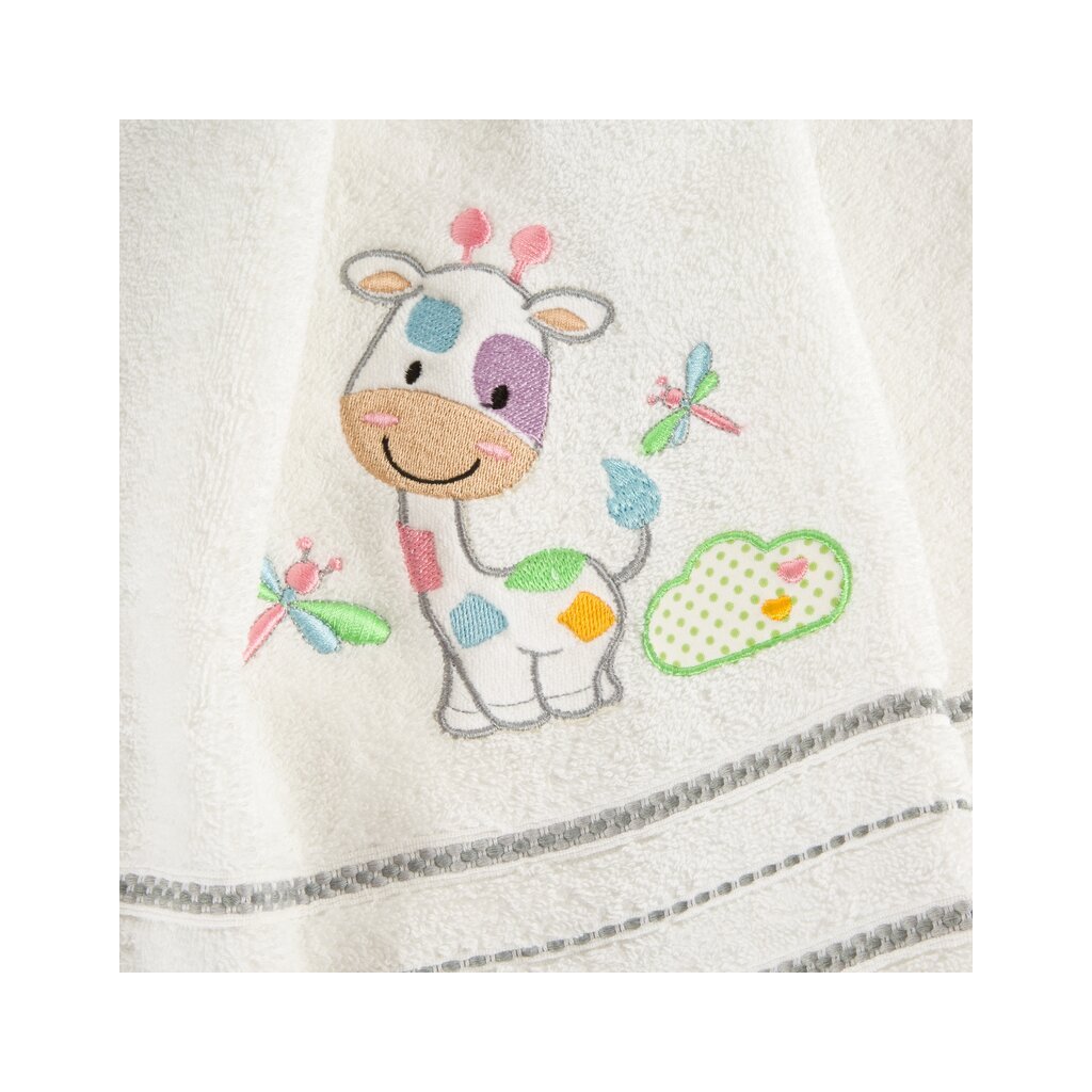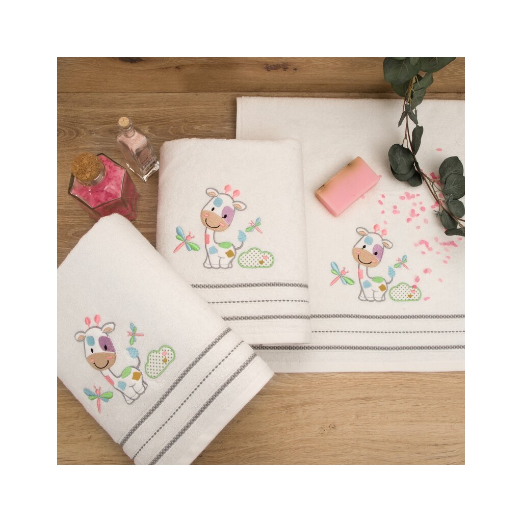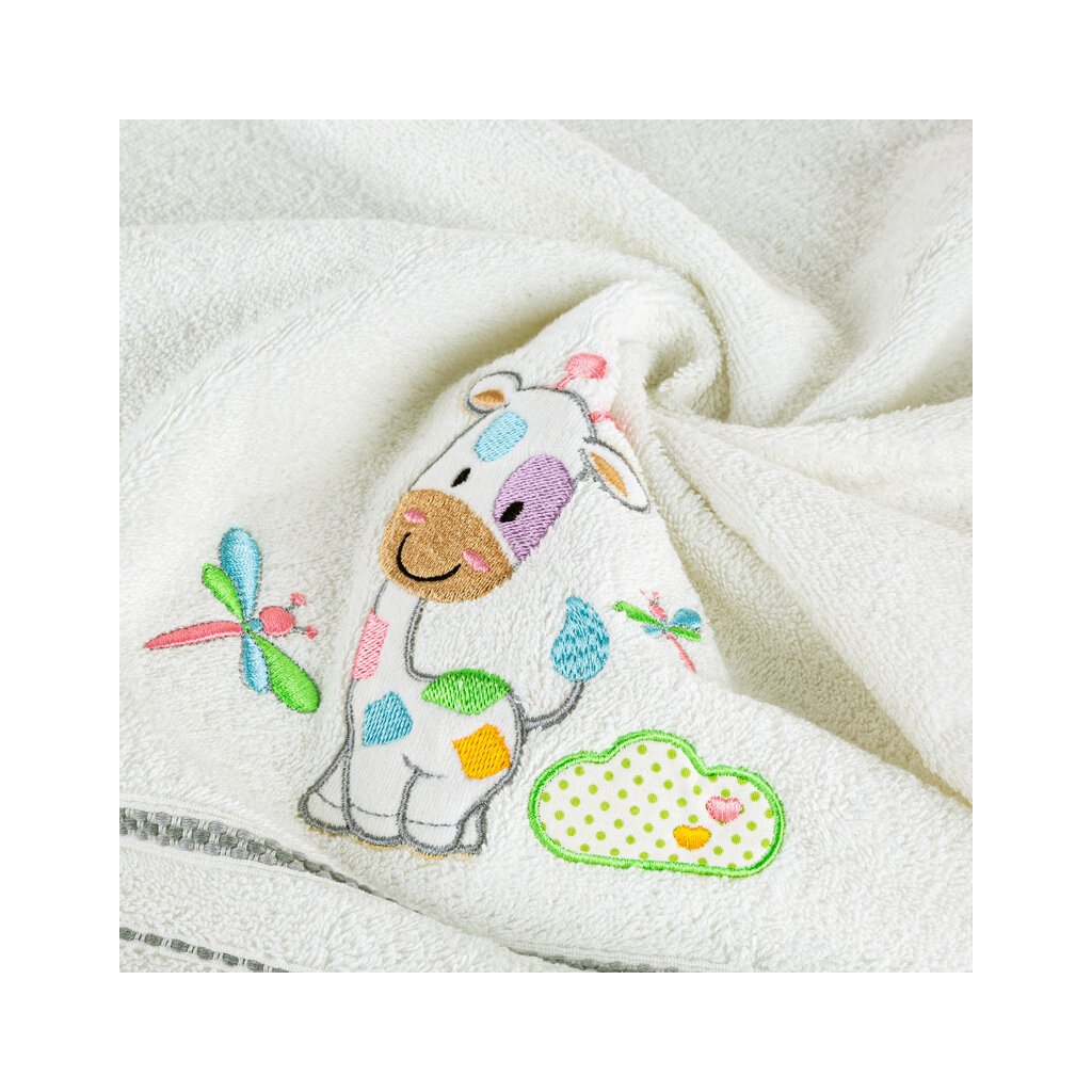 Mäkká a veľmi jemná detská osuška vyrobená zo savého froté z prírodnej bavlny. Uterák zdobený aplikáciou sa ľahko perie. šírka: 50 cm, dĺžka: 90 cm, farba: biela, hmotnosť: 450 GSM, zloženie: 100 % bavlnaDodatočné parametre