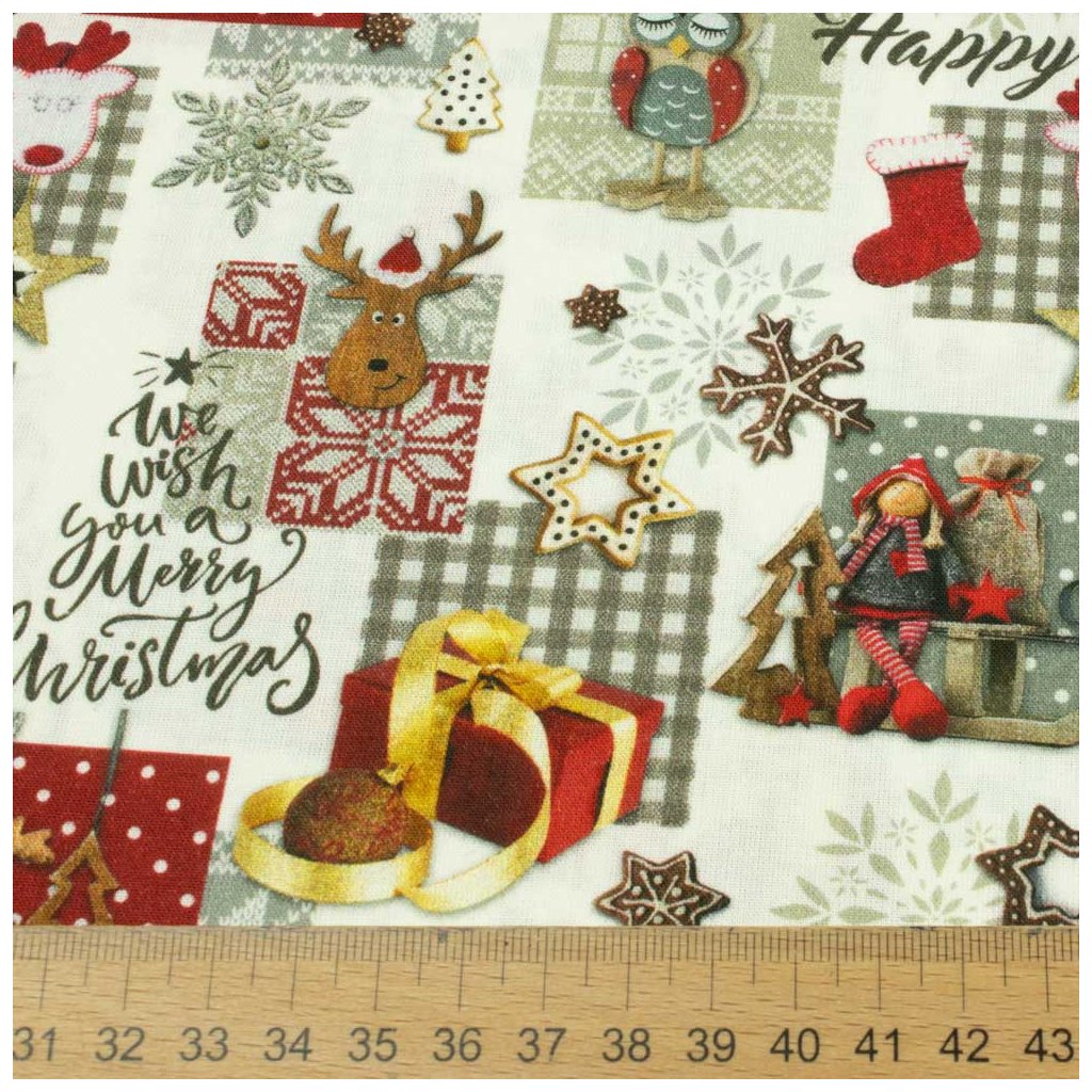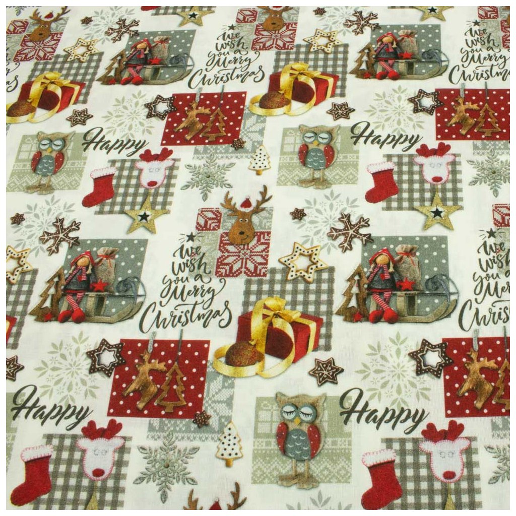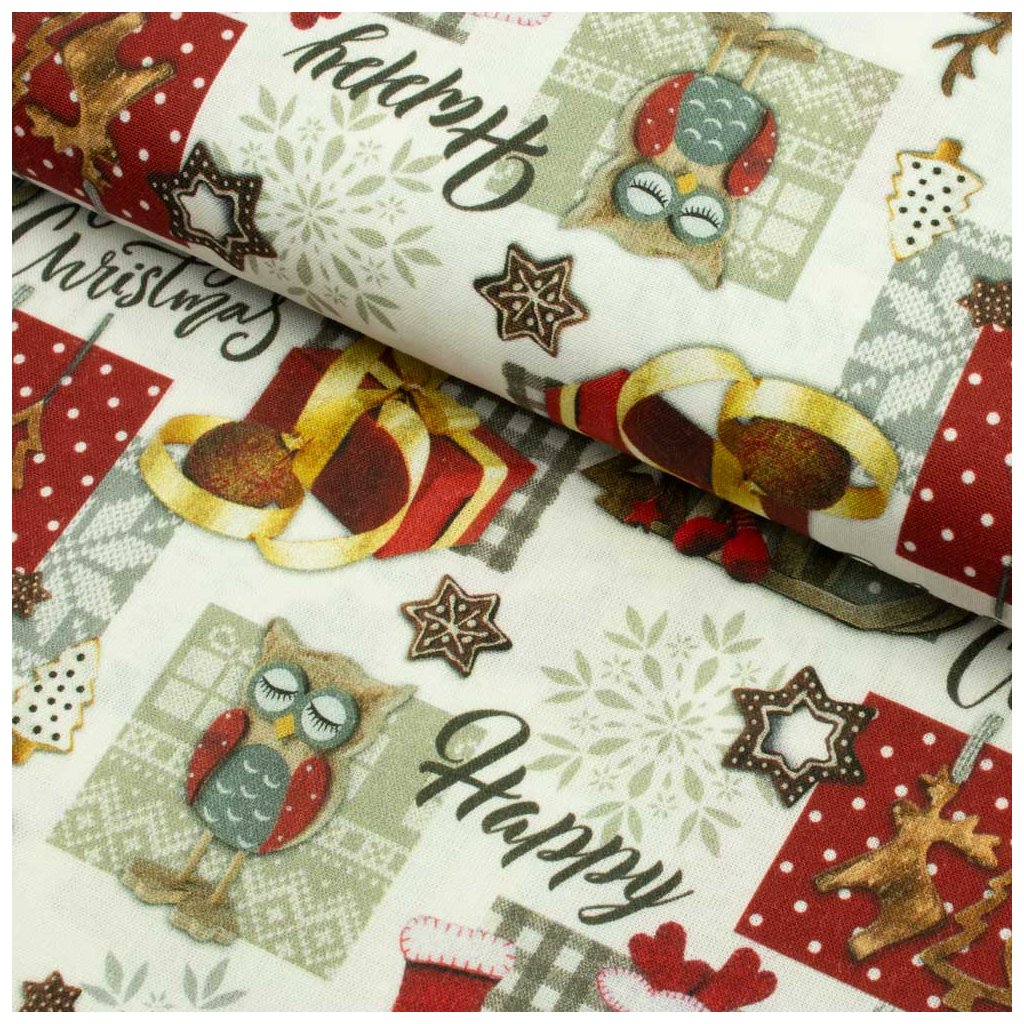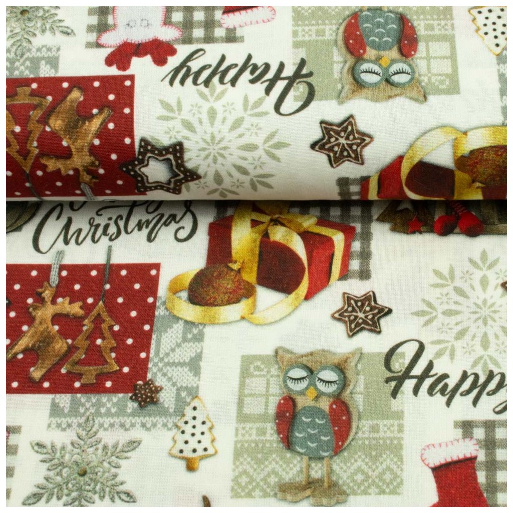 Bavlna digital - Vianoce Patchwork sovy a soby