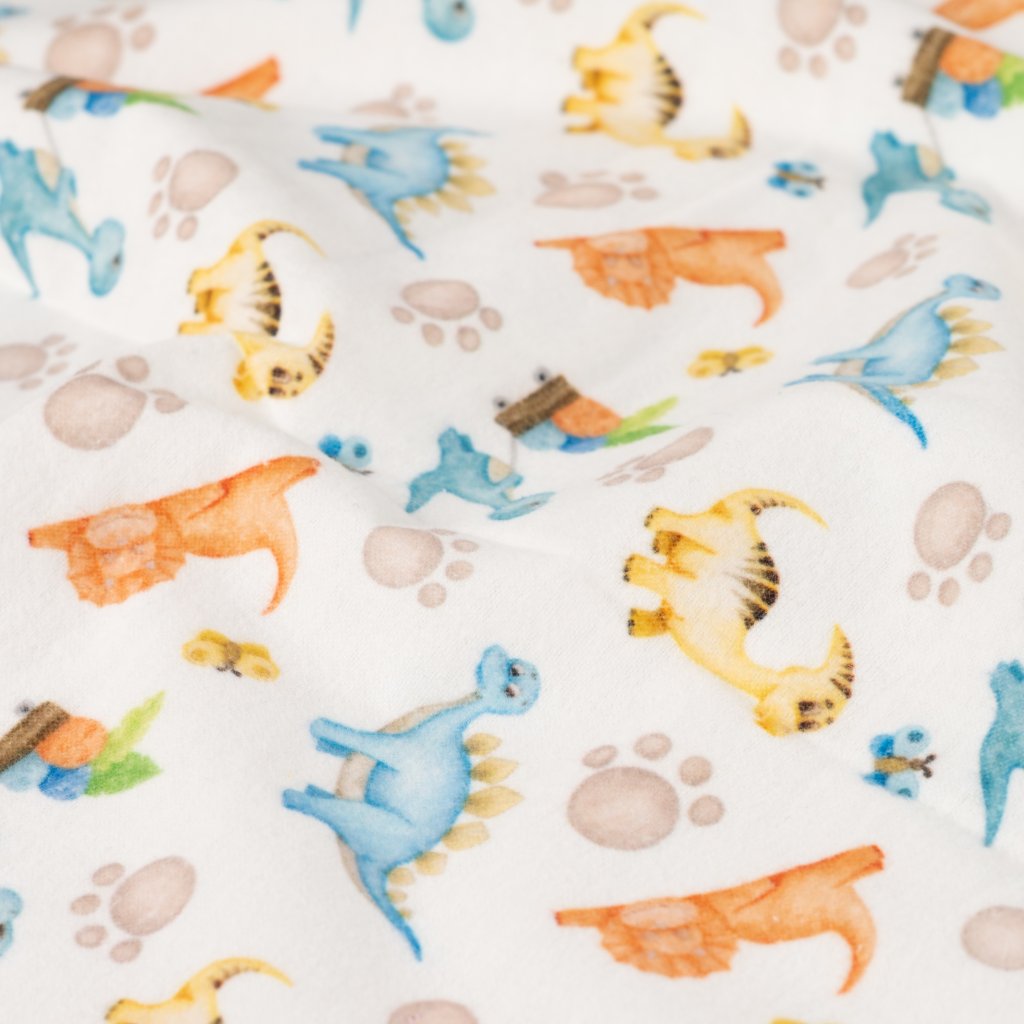 Jemná a hrejivá 100 % bavlnená flanelová látka s motívom mini dinosaurov na podklade v odtieni ecru. Digitálna potlač zabezpečuje krásne sýte farby a detailné spracovanie vzoru, ktoré si zachováva svoju kvalitu aj po praní. Vďaka mäkkej, počesanej úprave je flanel príjemný na dotyk, priedušný a ideálny na jesenné a zimné obdobie. Látka je vhodná najmä pre deti a chlapcov. Poskytuje pohodlie a dobrú priedušnosť, veľmi dobre absorbuje vlhkosť. Optimálna úprava umožňuje zachovať pevnostné parametre látky a rozmerovú stálosť po vypraní, čo ovplyvňuje životnosť oblečenia.