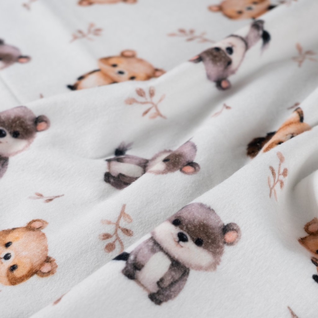 Jemná a hrejivá 100 % bavlnená flanelová látka s motívom zvieratiek na podklade v odtieni ecru. Digitálna potlač zabezpečuje krásne sýte farby a detailné spracovanie vzoru, ktoré si zachováva svoju kvalitu aj po praní. Vďaka mäkkej, počesanej úprave je flanel príjemný na dotyk, priedušný a ideálny na jesenné a zimné obdobie. Látka je vhodná najmä pre deti. Poskytuje pohodlie a dobrú priedušnosť, veľmi dobre absorbuje vlhkosť. Optimálna úprava umožňuje zachovať pevnostné parametre látky a rozmerovú stálosť po vypraní, čo ovplyvňuje životnosť oblečenia.