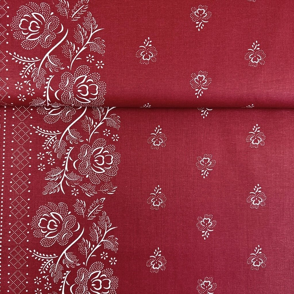 Bavlna ľudový vzor - Bordúra kvet bordová