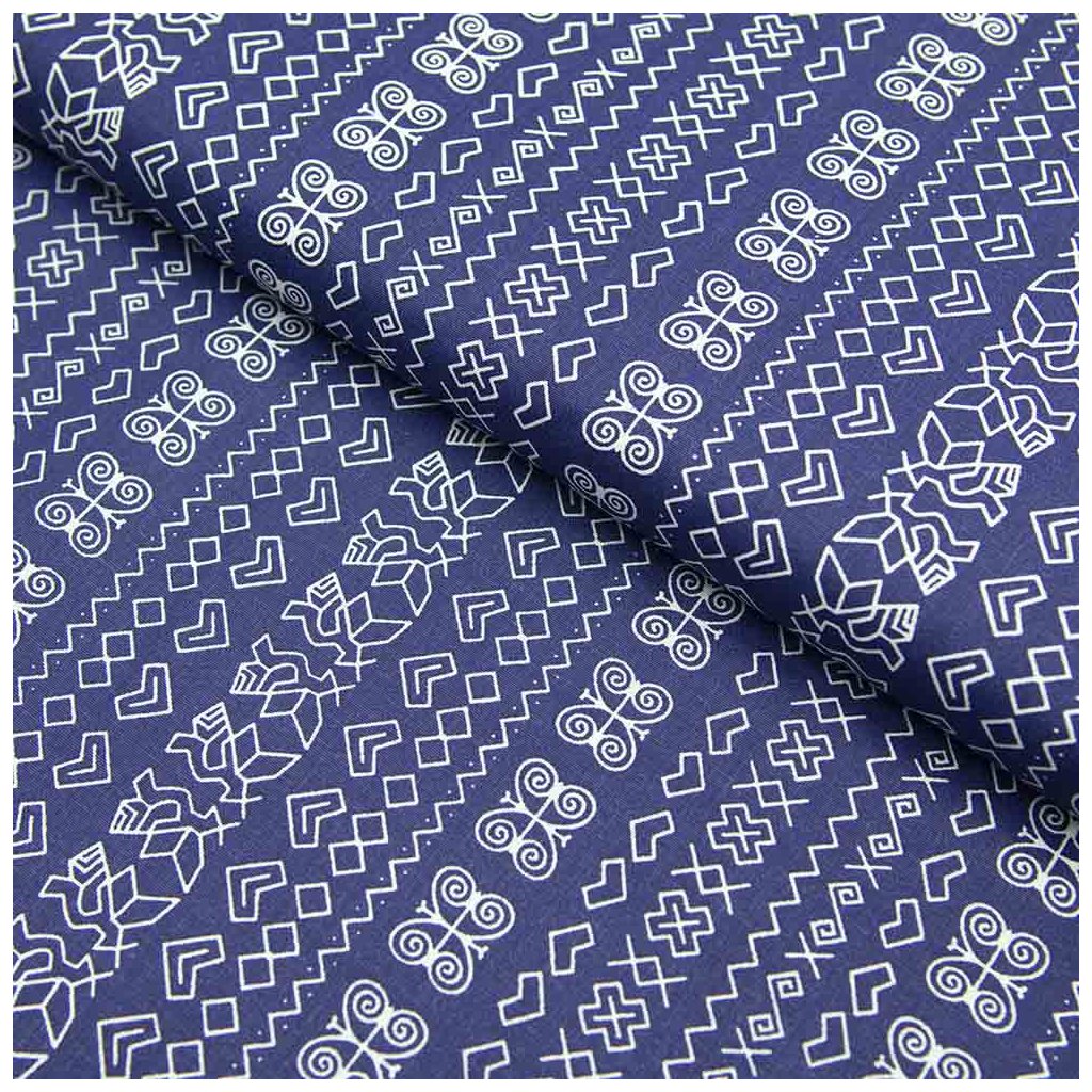 Bavlna ľudový vzor - Čičmany modrá tmavá