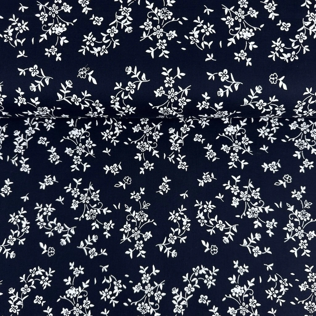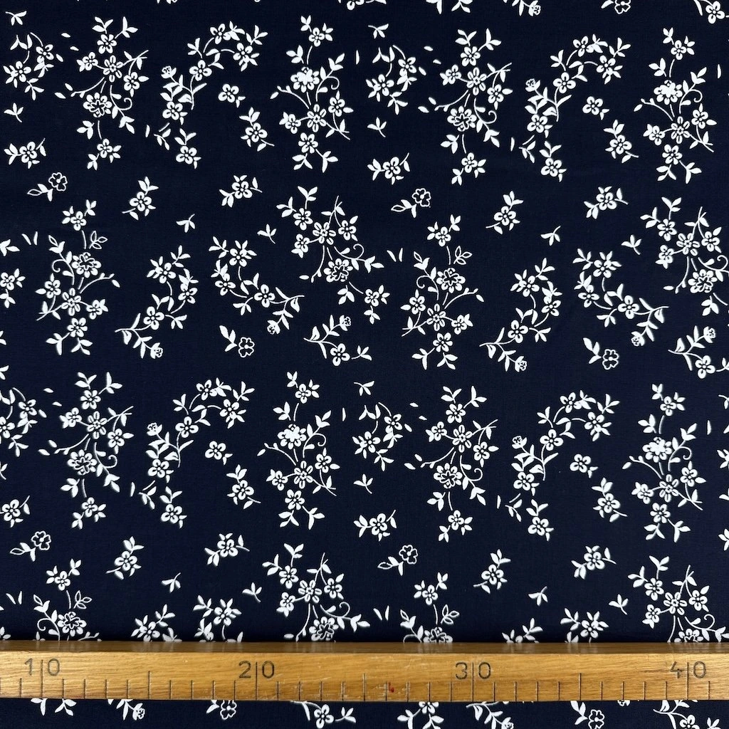 Bavlna ľudový vzor - Kvety na tmavo modrom