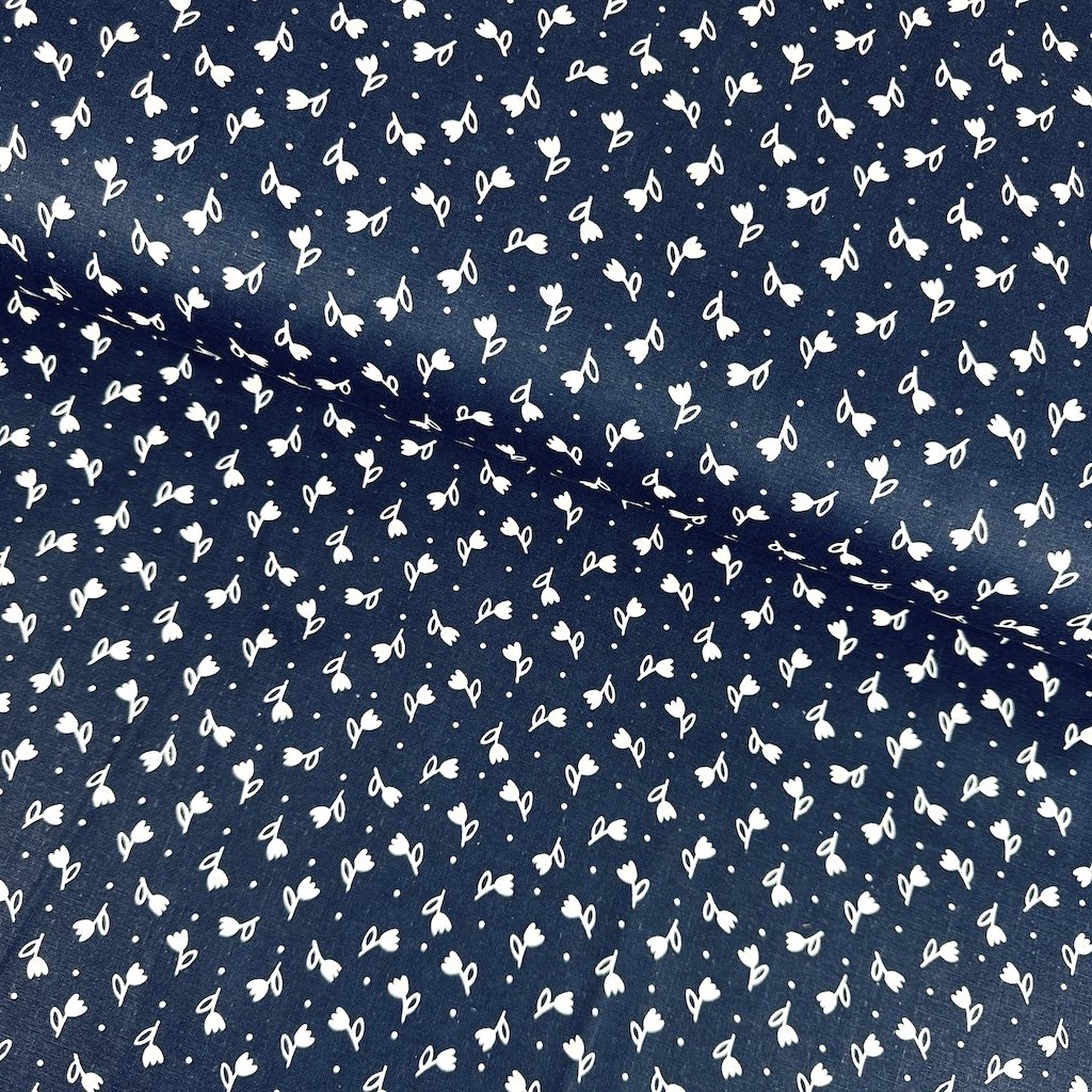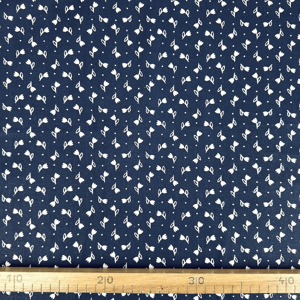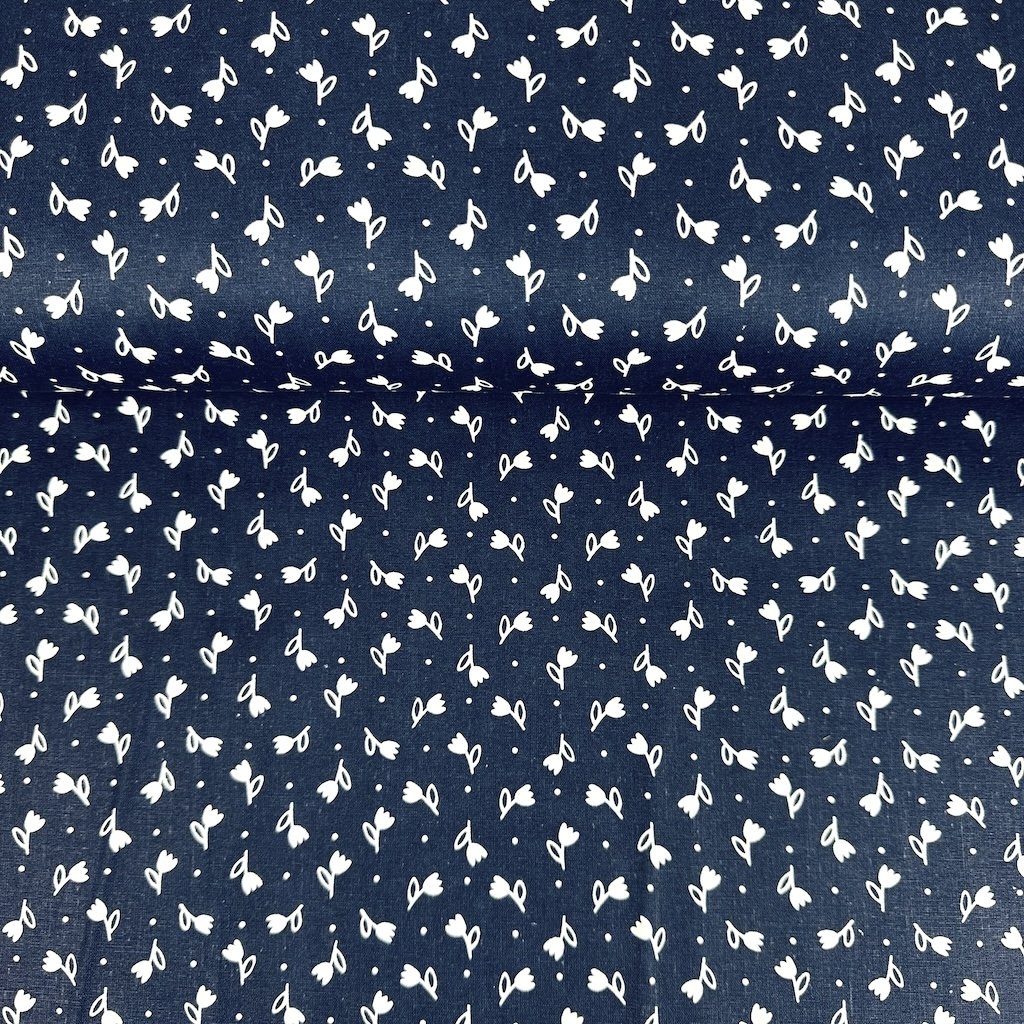 Bavlna ľudový vzor - Tulipán biely na tmavomodrom