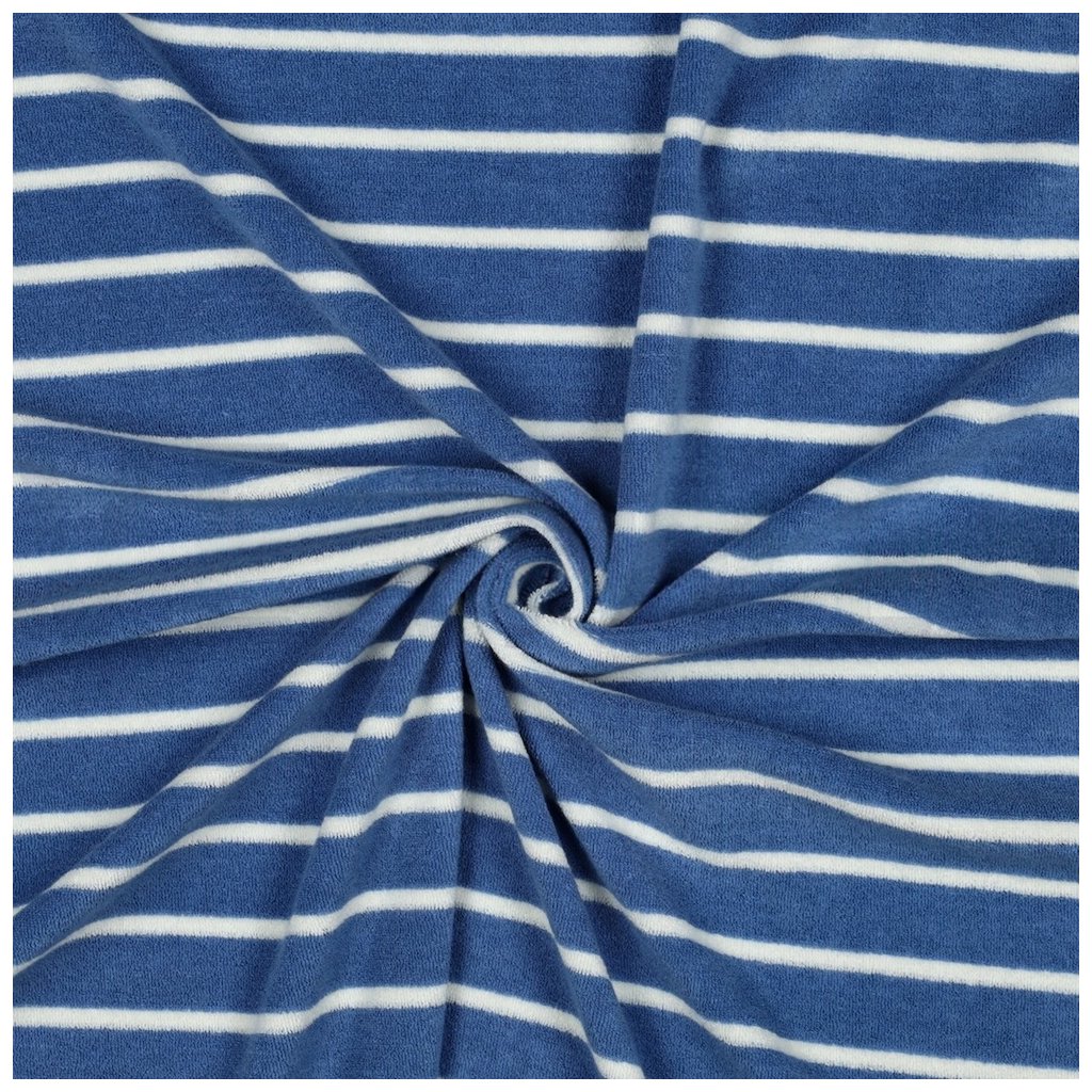 Kvalitná jemne elastická froté látka s tkanými pruhmi (yarn dyed stripes) od overeného európskeho výrobcu spája komfort, funkčnosť a moderný vzhľad. Vďaka použitiu farbených priadzí si pruhovaný dizajn zachováva svoju farebnú stálosť aj po opakovanom praní, čo zaručuje dlhú životnosť výsledných výrobkov. Froté je charakteristické svojou slučkovou štruktúrou, ktorá zabezpečuje vysokú savosť a príjemnú mäkkosť na dotyk. Táto látka je preto ideálnou voľbou na produkty, ktoré prichádzajú do kontaktu s vlhkosťou a pokožkou – od kúpeľňového textilu až po pohodlné domáce oblečenie.