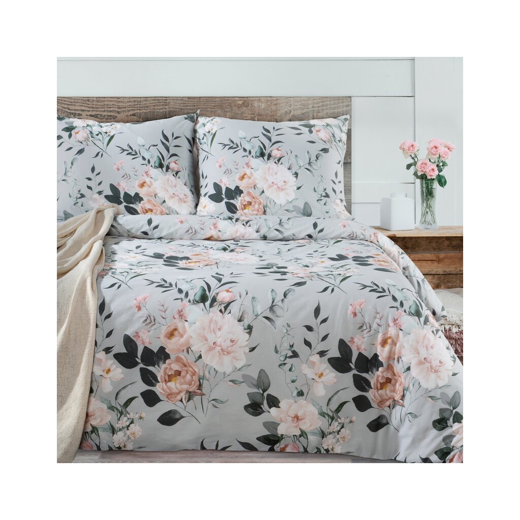 Súprava bavlnenej posteľnej bielizne s kvetinovou potlačou.