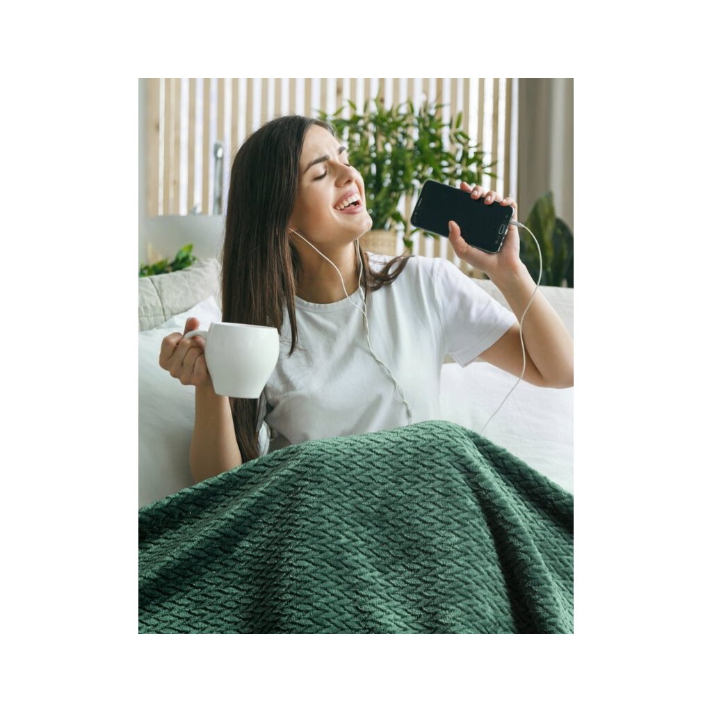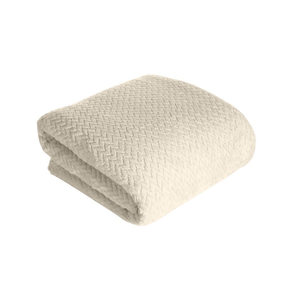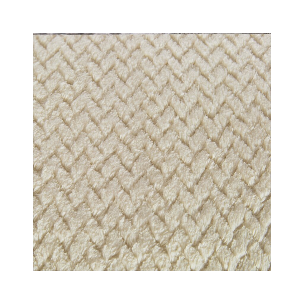 Klasická deka z príjemného vlákna v technológii mikroflano. Jednofarebná, nadýchaná štruktúra je zdobená minimalistickým reliéfnym vzorom v tvare rybej kosti.