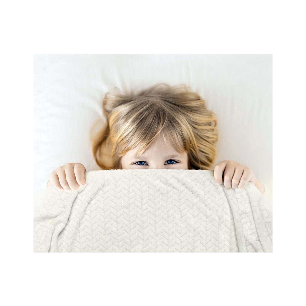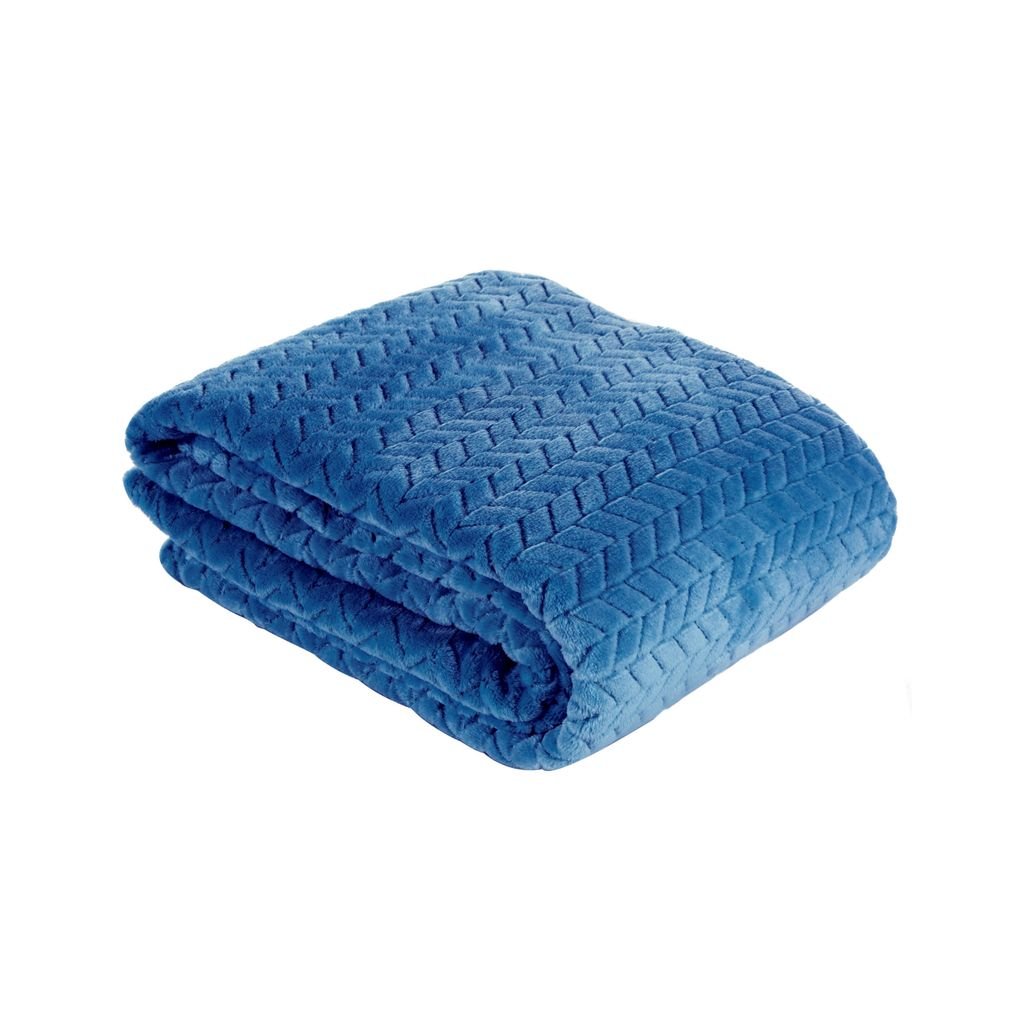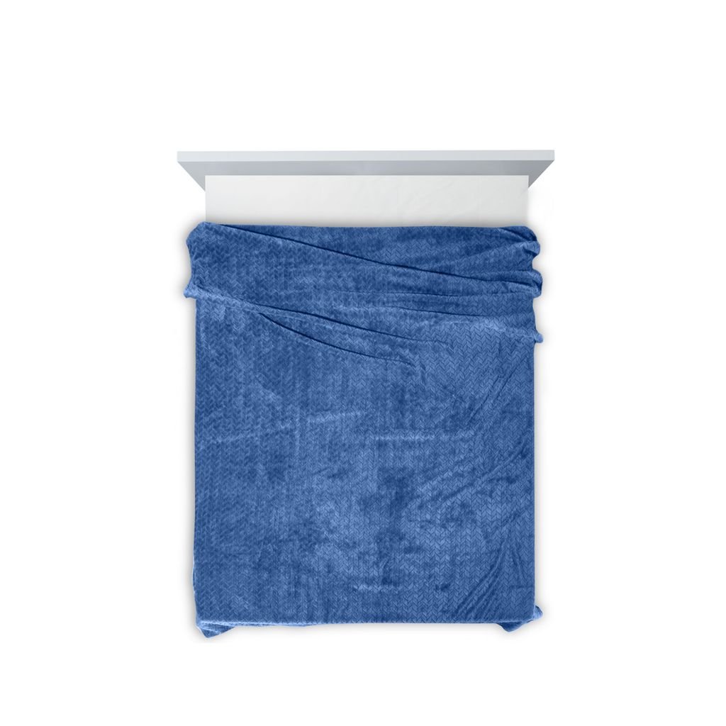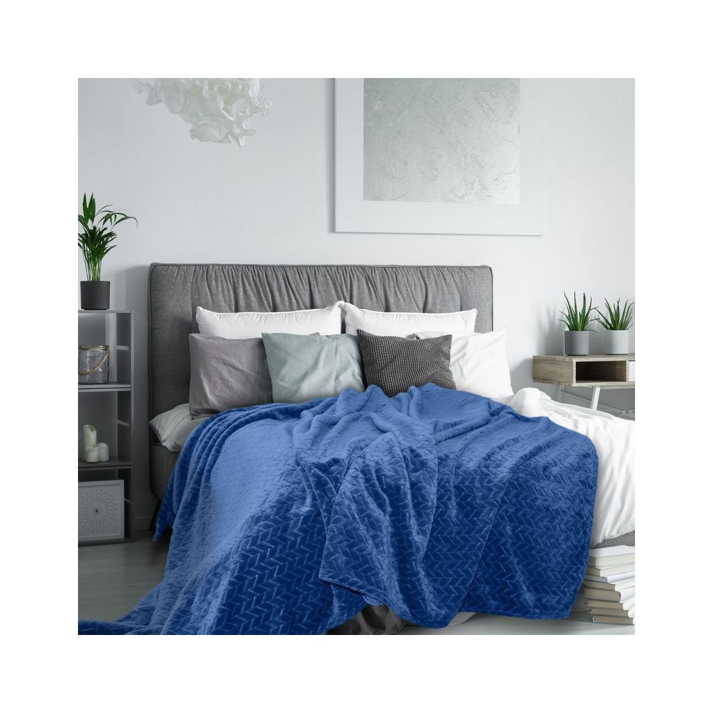 Klasická deka z vlákna príjemného na dotyk v technológii mikroflanel. Jednofarebná nadýchaná textúra je zdobená minimalistickým reliéfom rybej kosti. šírka: 220 cm, dĺžka: 200 cm, farba: námornícka modrá, hmotnosť: 250GSM GSM, zloženie: 100 % polyesterDodatočné parametre