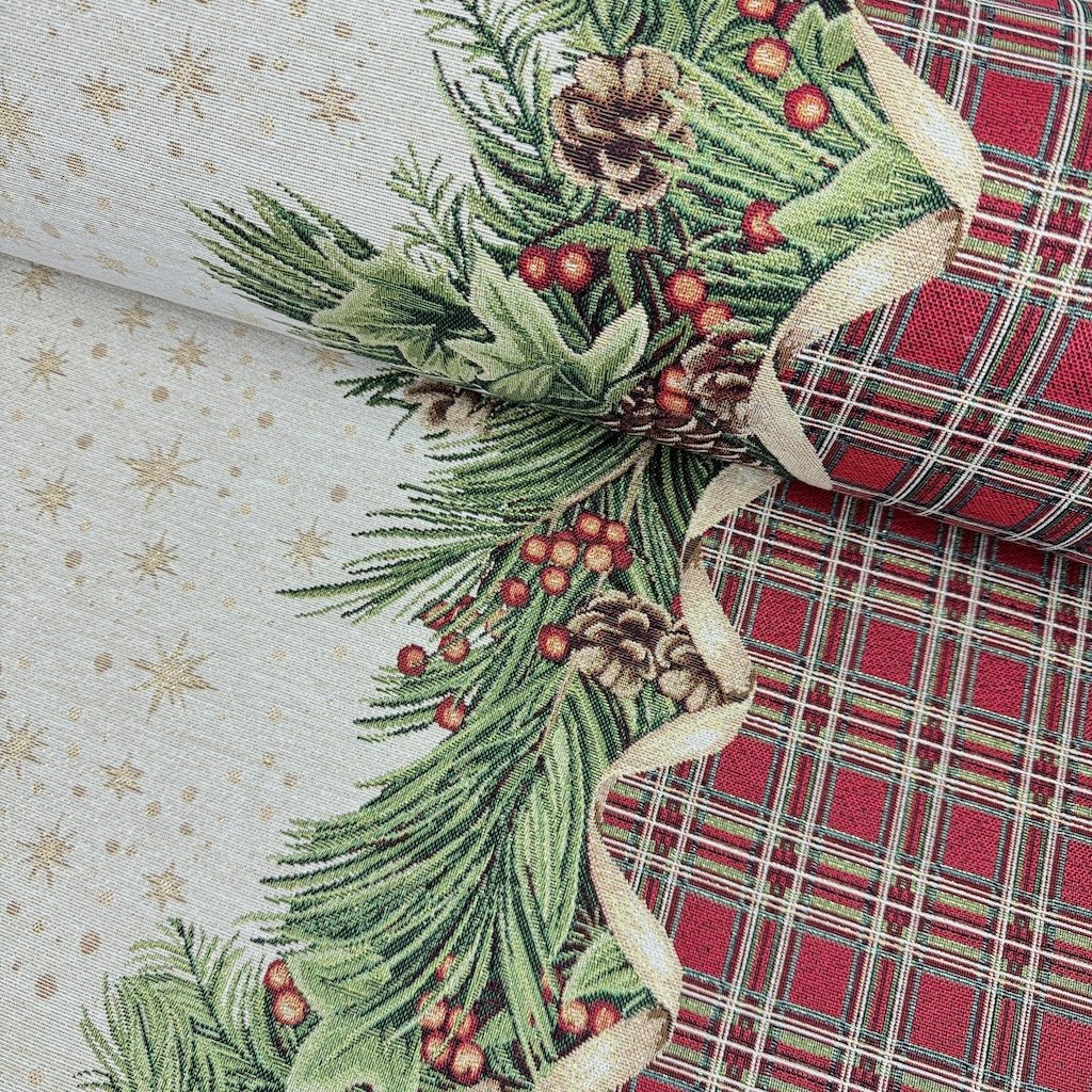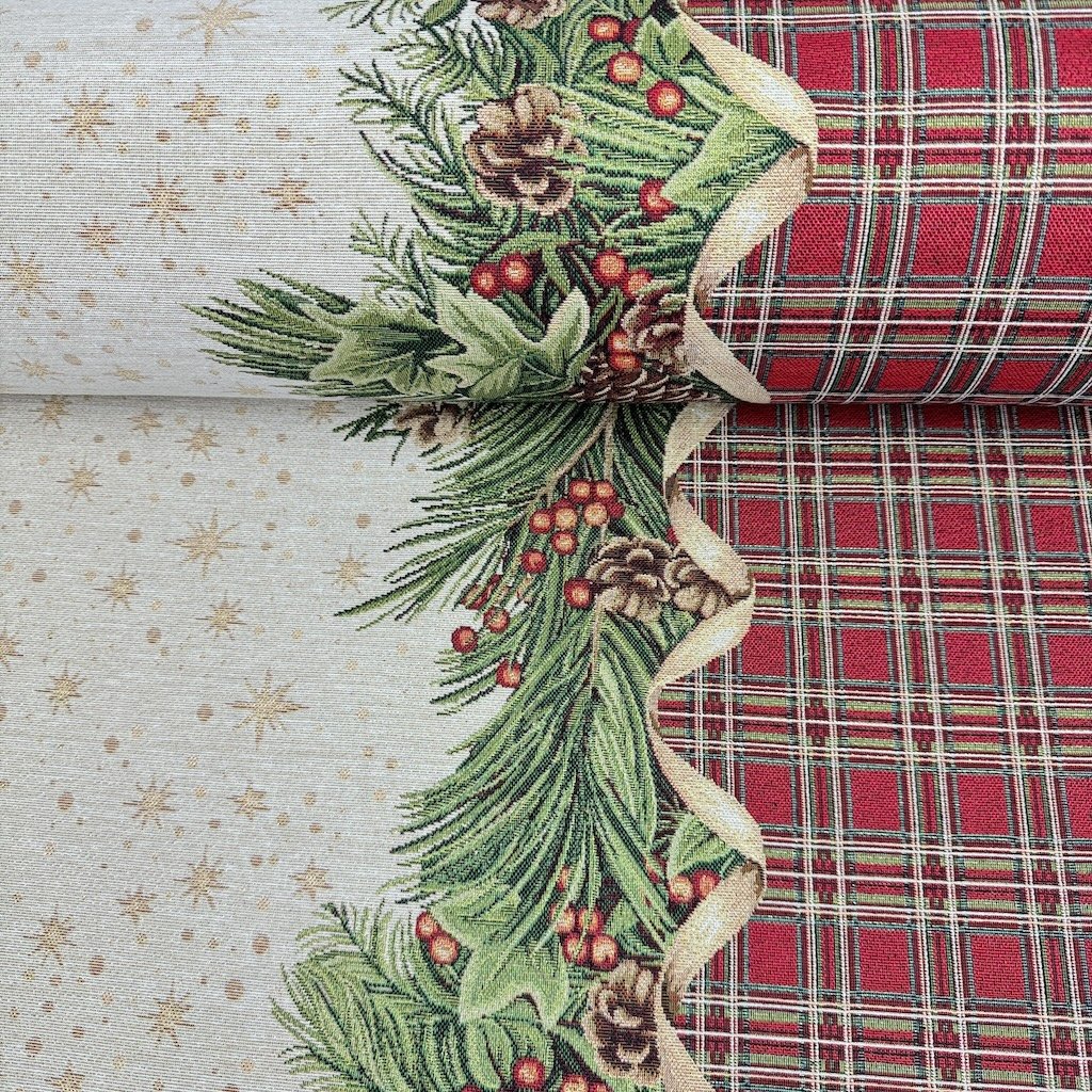 Gobelín Vianoce Obrus - Vianočené karo s hviezdami a šiškami