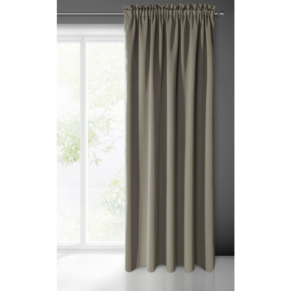 Elegantný jednofarebný záves z vysoko zatemňujúcej tkaniny. Teplá, matná tkanina bez dekorácie je univerzálnym prvkom interiérového dizajnu. šírka: 135 cm, Dĺžka: 270 cm, Farba: tmavobéžová, Hmotnosť: 210 GSM, Zloženie: 100 % polyesterDodatočné parametre