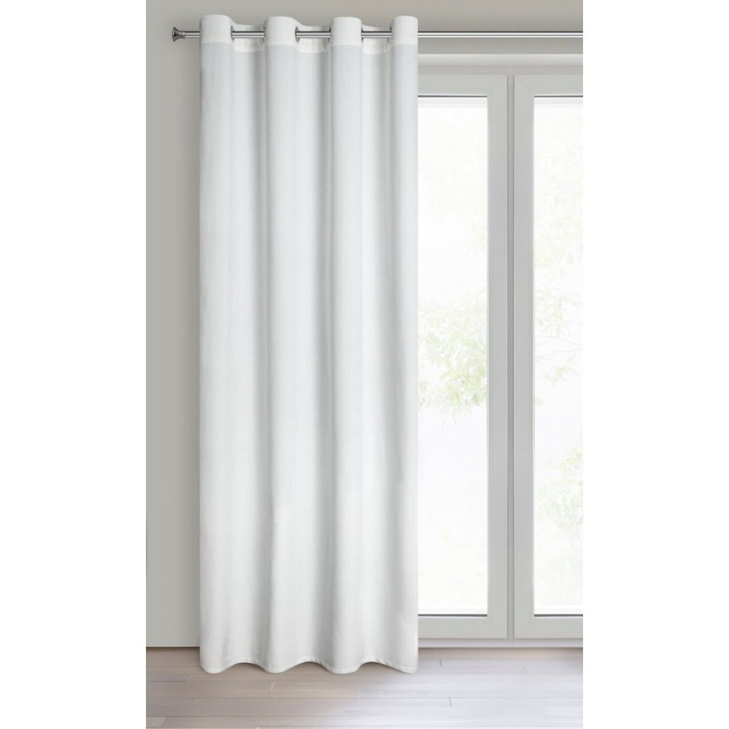 Mäkký zamatový záves s matnou povrchovou úpravou. Hustá tkanina so strednými zatemňovacími vlastnosťami dodáva interiéru elegantný charakter.