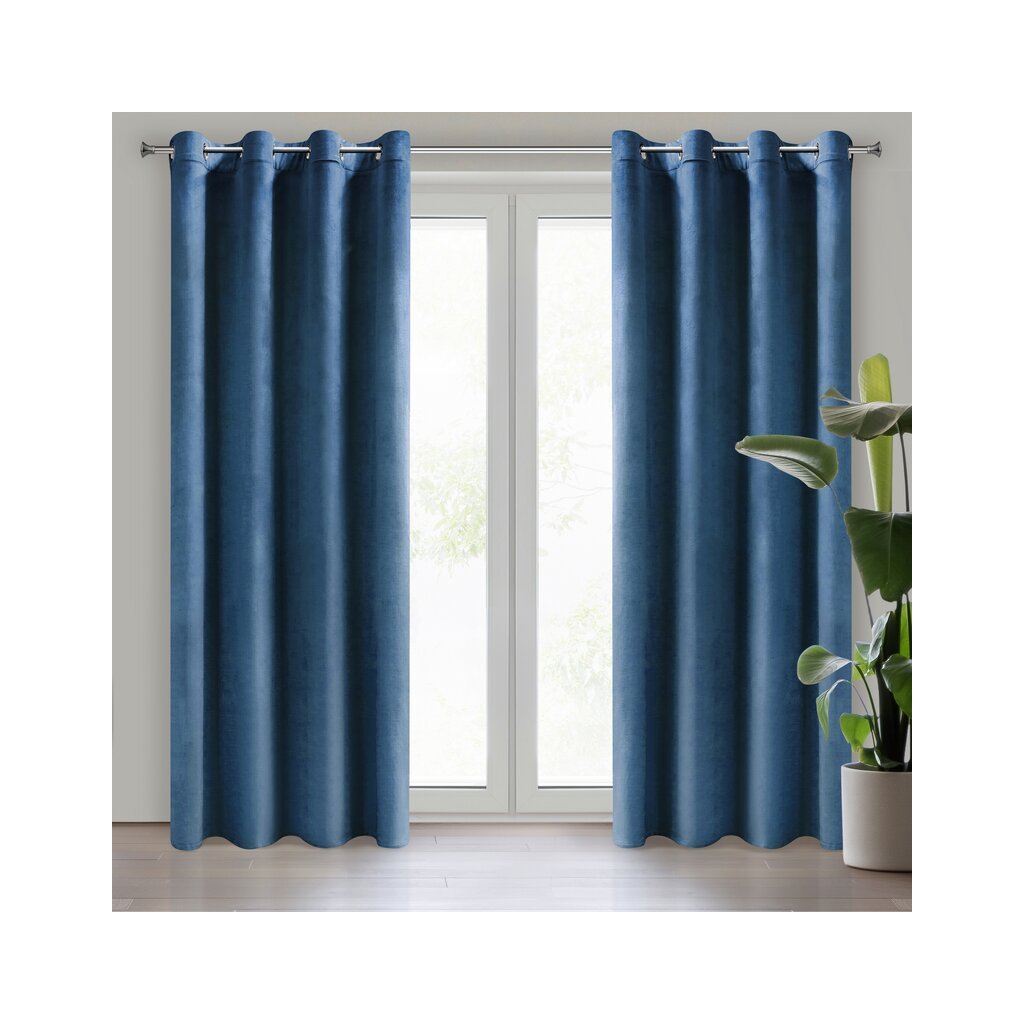 HOTOVÝ ZÁVES MELANIE NA KRÚŽKOCH 140X270CM TMAVOMODRÝ