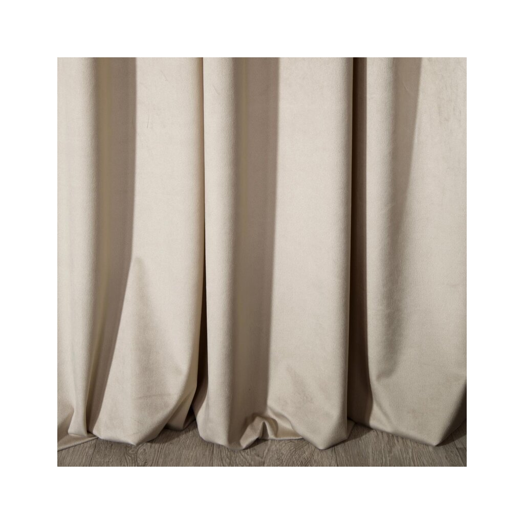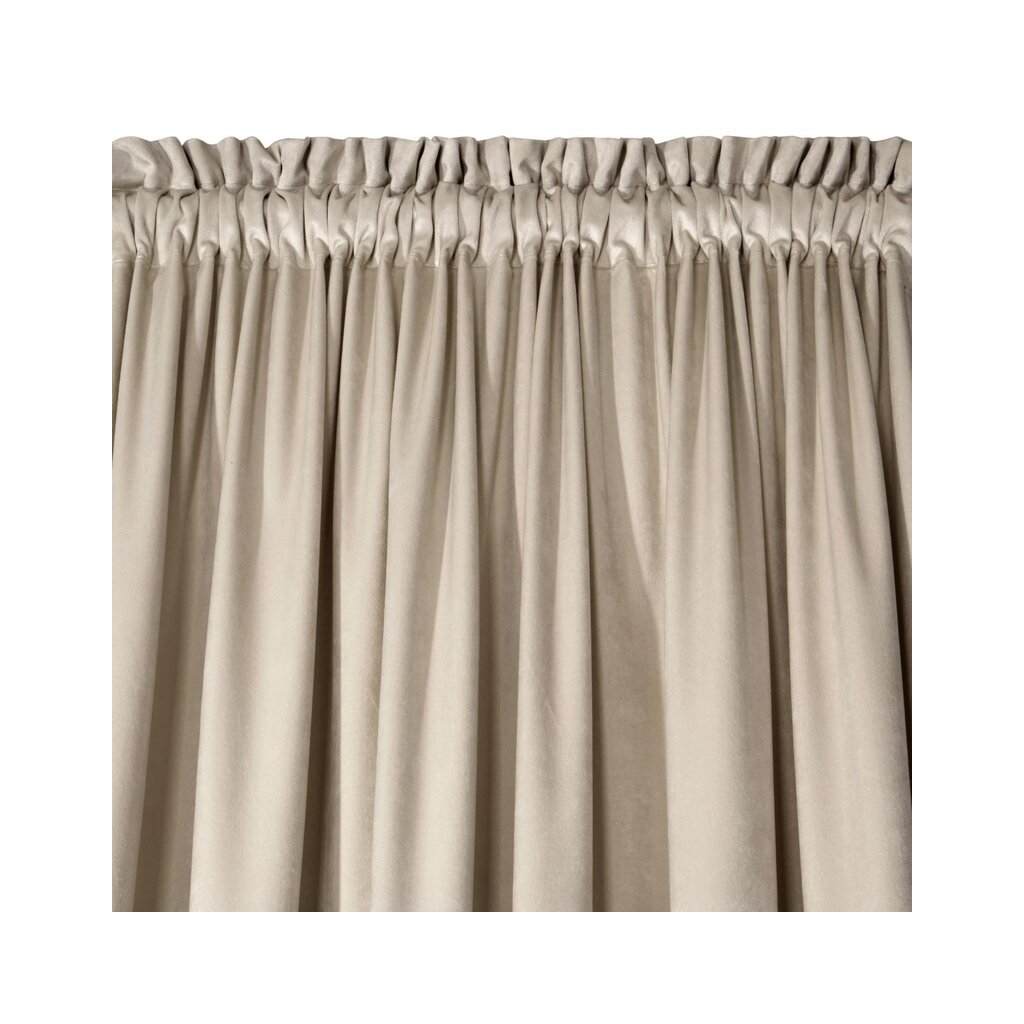Mäkký zamatový záves s matným povrchom. Mäkká tkanina so stredne silným tienením dodáva interiéru elegantný nádych. šírka: 140 cm, dĺžka: 270 cm, farba: béžová, hmotnosť: 200 GSM, zloženie: 100 % polyester