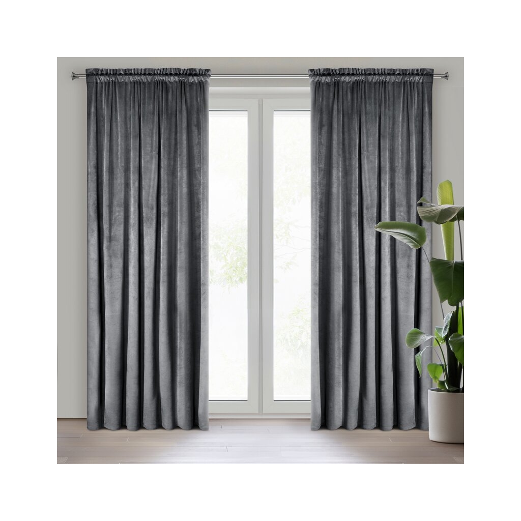 Mäkký zamatový záves s matnou povrchovou úpravou. Hustá tkanina so strednými zatemňovacími vlastnosťami dodáva interiéru elegantný charakter.
