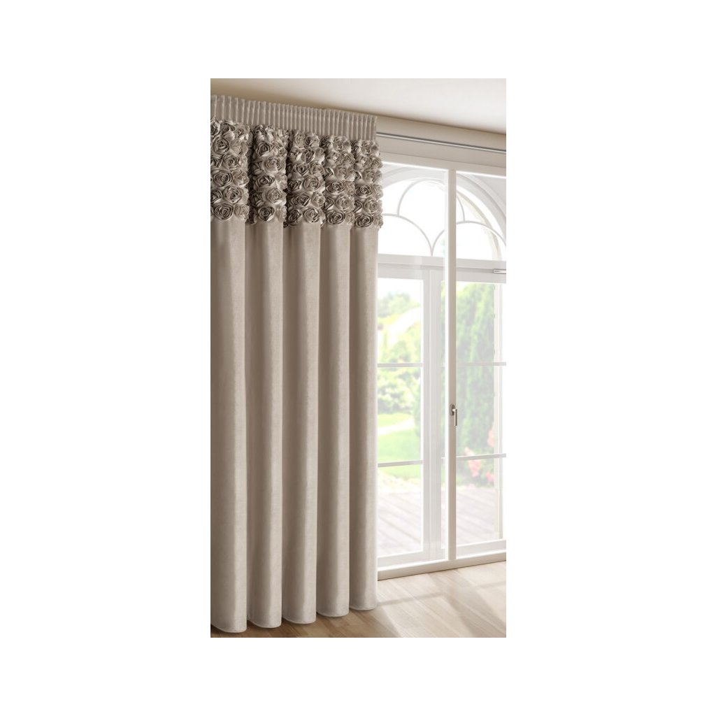 HOTOVÝ ZÁVES ROSES13 NA PÁSKE 140X270CM TMAVOBÉŽOVÝ
