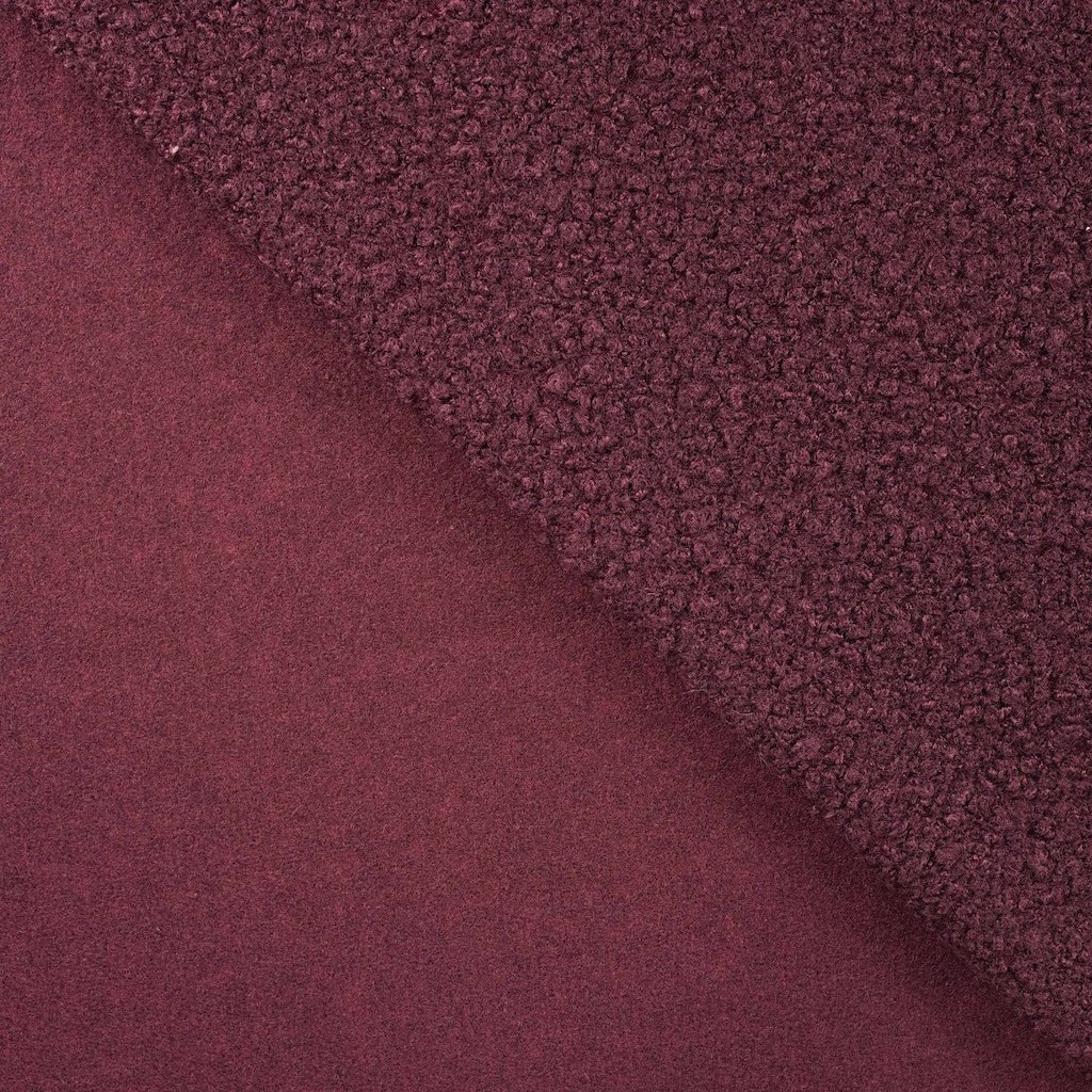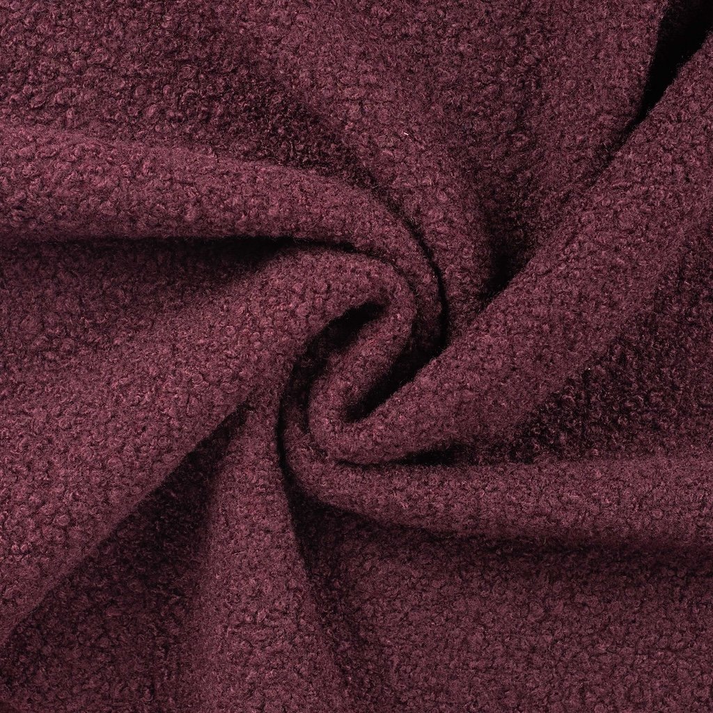 Mäkká a hebká látka zo 100 % polyesteru v sýtej bordovej farbe má jemne textúrovaný povrch. S gramážou 340 g/m2 a pletenou konštrukciou ponúka luxusný pocit na dotyk. Kabátovina od európskeho výrobcu sa ľahko udržiava, je ideálna na kabáty, kostýmy, cardigany či pončá.