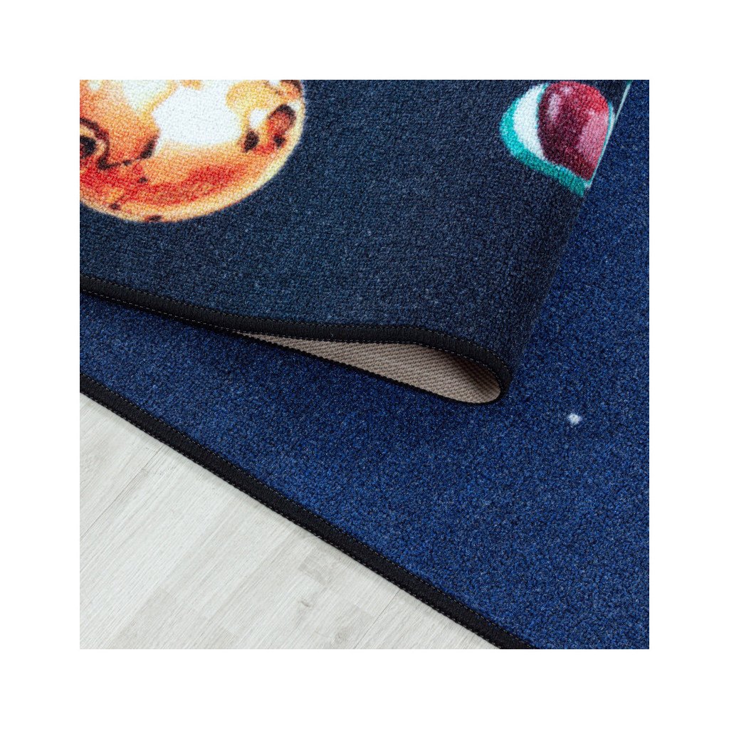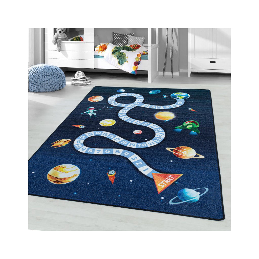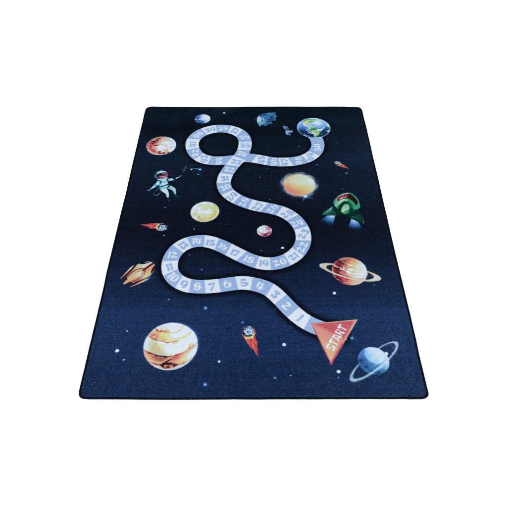 Detský kusový koberec Play s parádnym vzorom slnečnej sústavy, pri ktorom sa snažíme dostať späť na Zem. Koberec, ktorý vaše dieťa zaujme, inšpiruje a podnieti k hre. Koberec má protišmykový podklad.