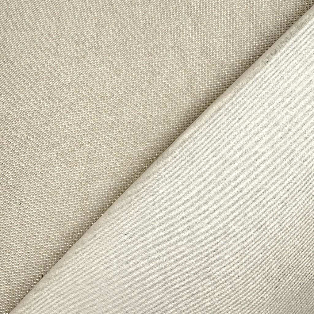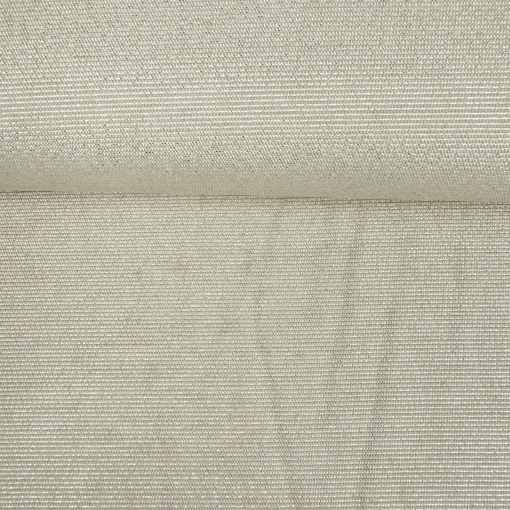 Dekoračná kvalitná látka s materiálovým zložením 55% polyester, 45% bavlna a gramážou 225 g/m2, popretkávaná striebornou lurexovou niťou. Látka ideálna na šitie vankúšov, poťahov, obrusov, závesov a rôznych iných dekorácií.Dodatočné parametre