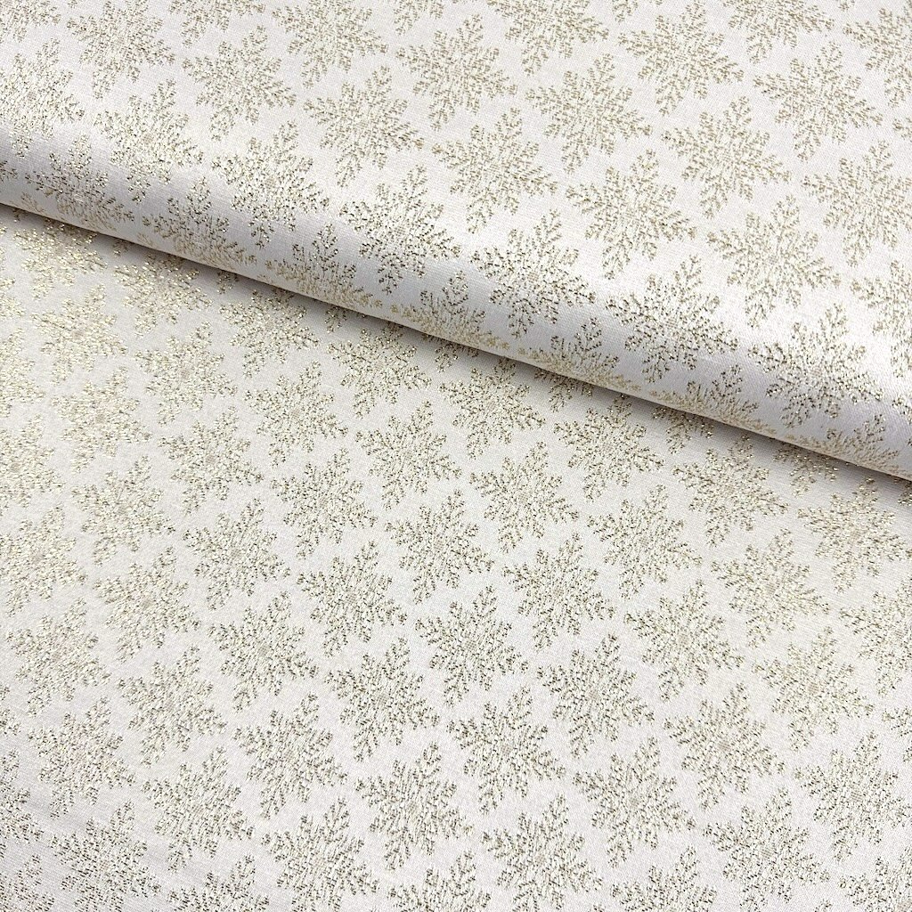 Dekoračná kvalitná látka s materiálovým zložením 55% polyester, 45% bavlna a gramážou 225 g/m2, popretkávaná striebornou lurexovou niťou. Látka ideálna na šitie vankúšov, poťahov, obrusov, závesov a rôznych iných dekorácií.Dodatočné parametre