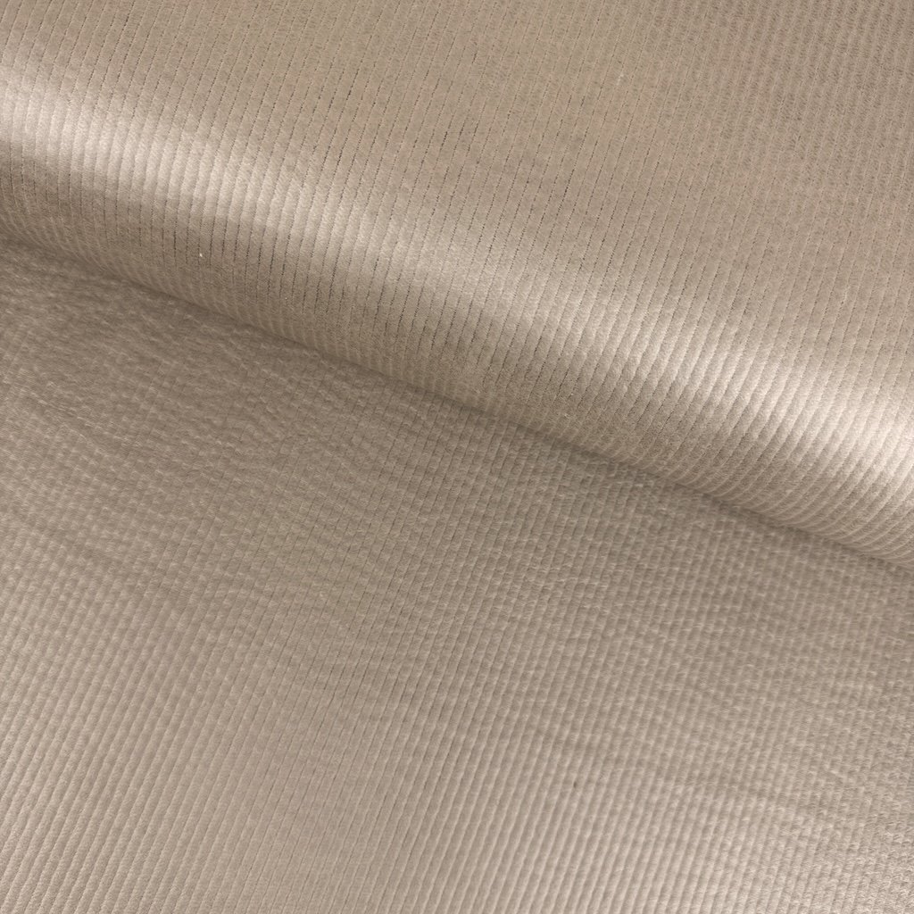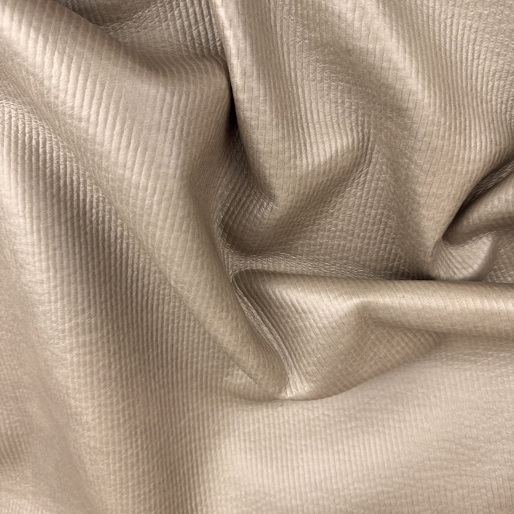 Menčester Cord Elegance s lycrou je elegantná a funkčná menčestrová látka s jemnou povrchovou úpravou (coated), ktorá zvyšuje jej odolnosť a estetický efekt. Povrchová “coated” úprava dodáva látke jemný lesklý efekt, zvyšuje jej odolnosť voči opotrebeniu a prieniku vlhkosti. Vďaka elastanu v zložení ponúka miernu pružnosť, čo zlepšuje komfort pri nosení a pohybe. Stredne vysoká gramáž (370 g/m²) zabezpečuje, že látka je pevná, ale nie príliš masívna — vhodná pre bundy, saká, prikrývky alebo módne doplnky. Klasická menčestrová textúra dodáva látke hrejivý a vizuálne zaujímavý efekt.
