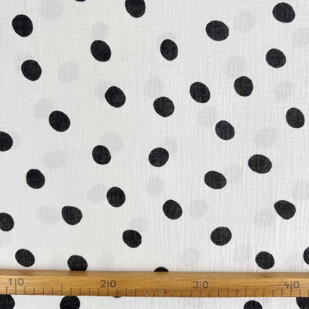 Vzorovaný mušelín / gázovina alebo aj fačovina je jemná, vzdušná a mimoriadne príjemná látka vyrobená zo 100 % bavlny. Vďaka svojej typickej krepovej (zvrásnenej) štruktúre je prirodzene elastický, mäkký na dotyk a nevyžaduje žehlenie. Dvojitá gázovina zabezpečuje pevnosť materiálu pri zachovaní jeho ľahkosti a priedušnosti. Elegantné vzory dodávajú látke originálny vzhľad, ktorý vynikne pri šití detského aj dámskeho oblečenia či bytových doplnkov. Mušelín je obľúbený najmä na letné šaty, blúzky, sukne, košele, detské body, zavinovačky, prikrývky alebo šatky.