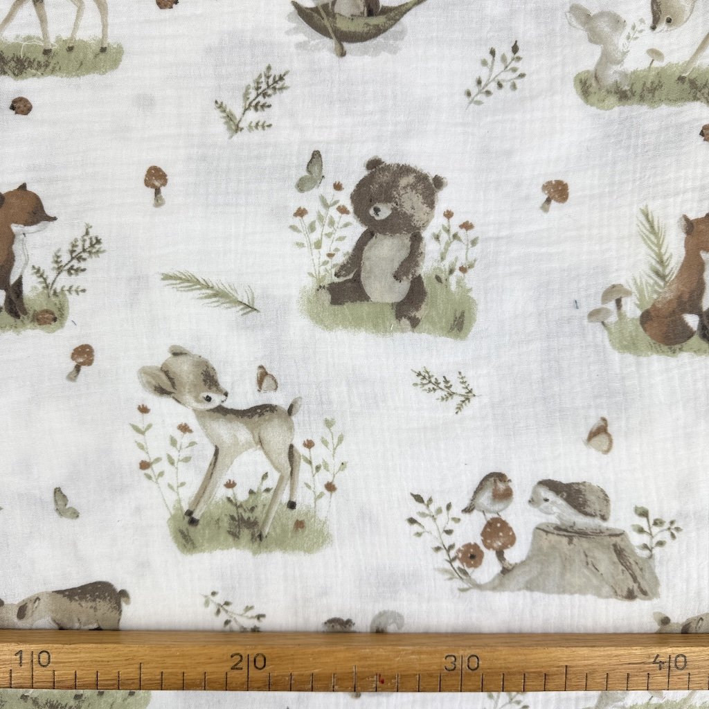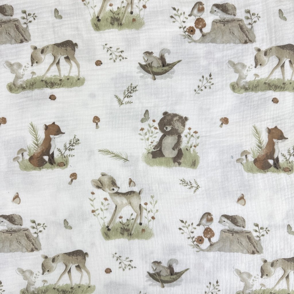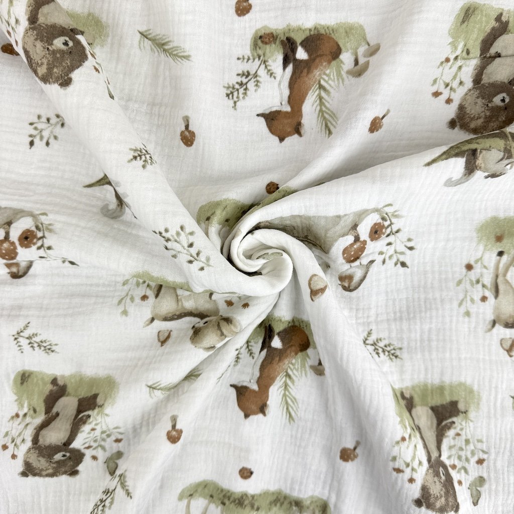 Vzorovaný mušelín / gázovina alebo aj fačovina je jemná, vzdušná a mimoriadne príjemná látka vyrobená zo 100 % bavlny. Vďaka svojej typickej krepovej (zvrásnenej) štruktúre je prirodzene elastický, mäkký na dotyk a nevyžaduje žehlenie. Dvojitá gázovina zabezpečuje pevnosť materiálu pri zachovaní jeho ľahkosti a priedušnosti. Elegantné vzory dodávajú látke originálny vzhľad, ktorý vynikne pri šití detského aj dámskeho oblečenia či bytových doplnkov. Mušelín je obľúbený najmä na letné šaty, blúzky, sukne, košele, detské body, zavinovačky, prikrývky alebo šatky.