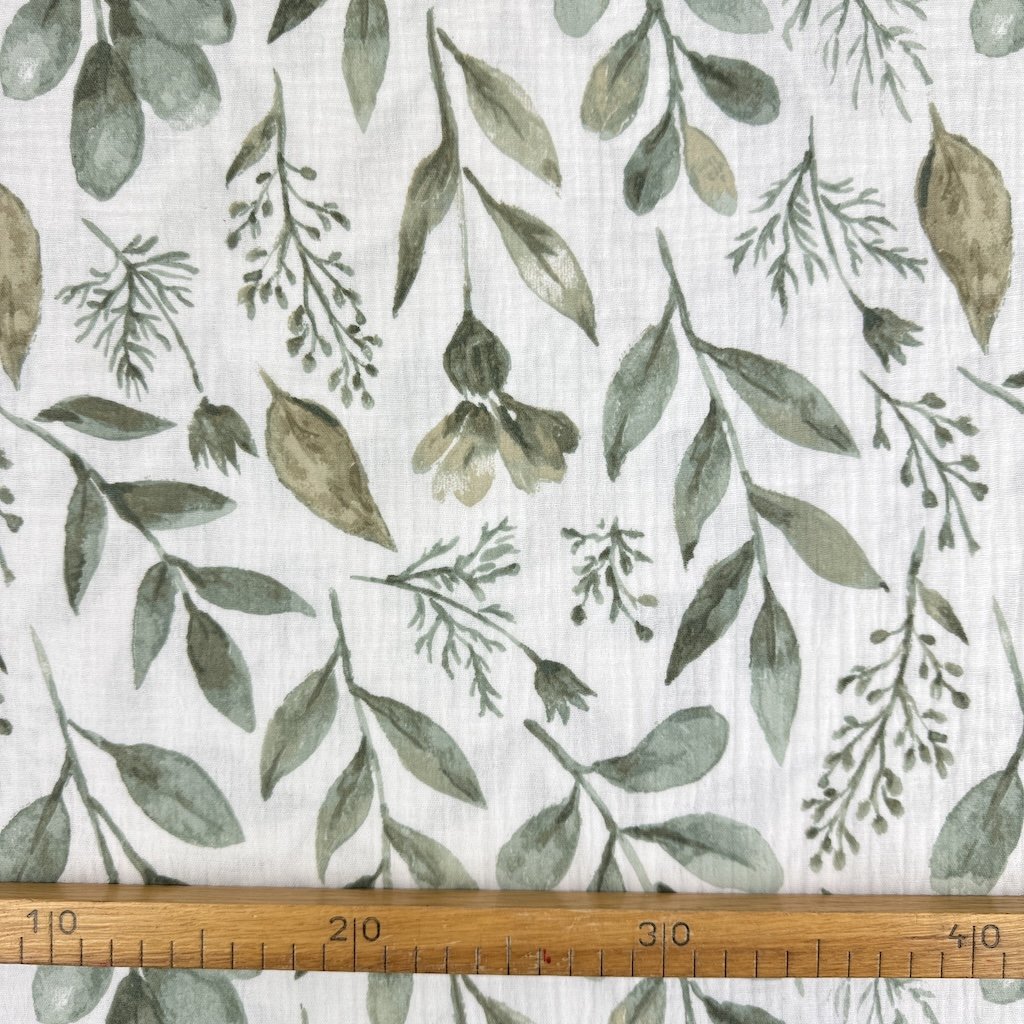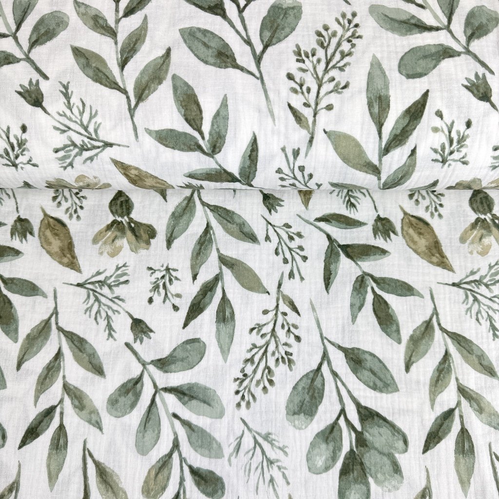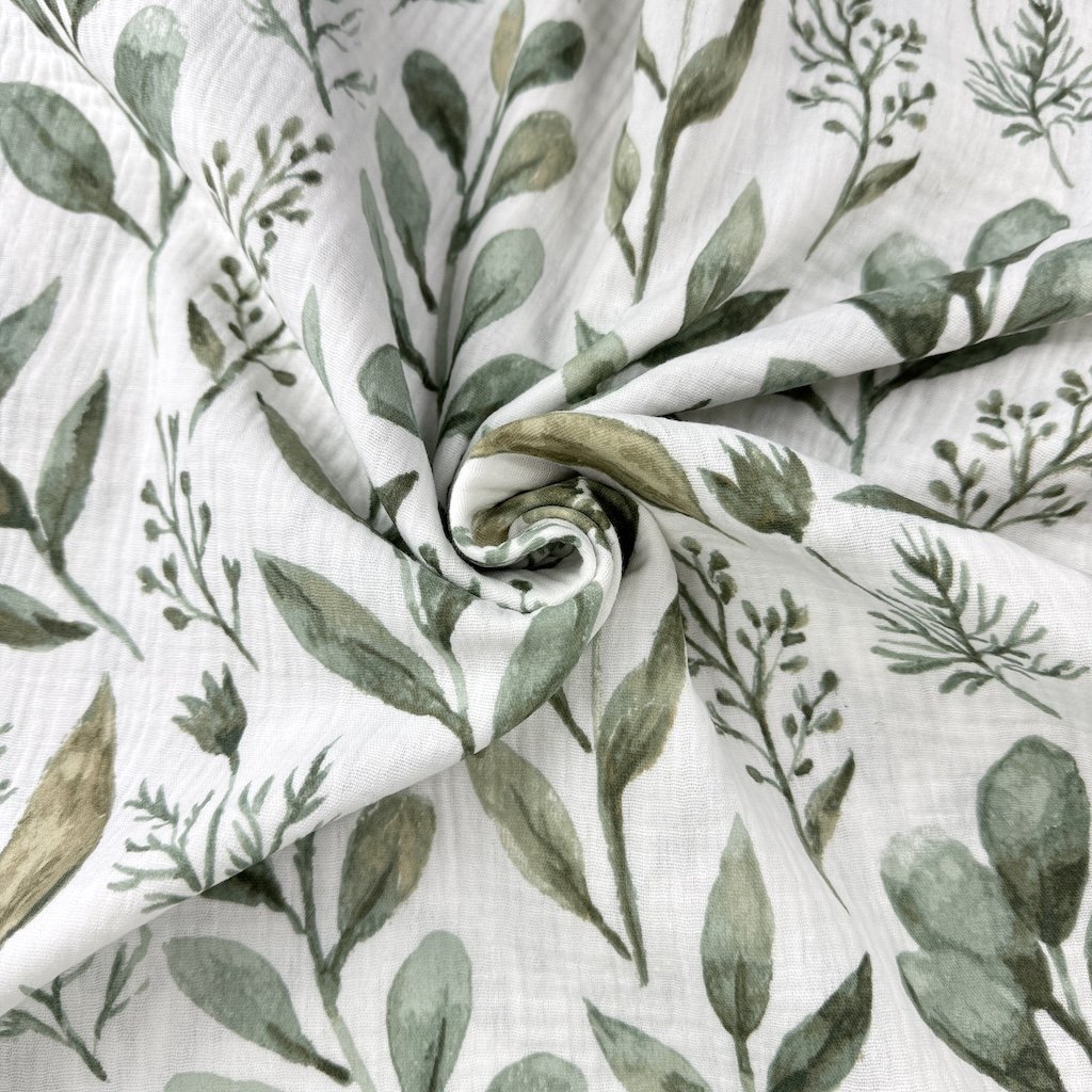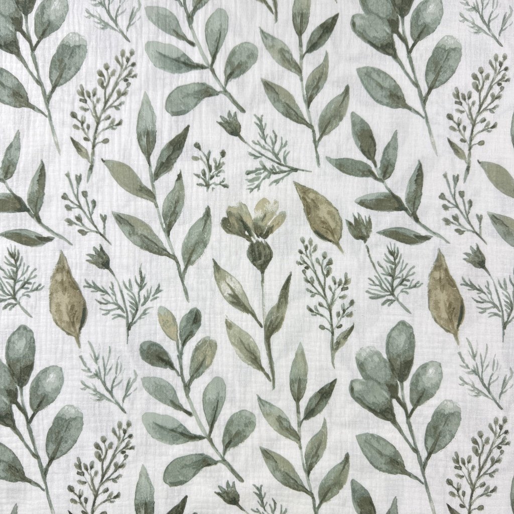 Vzorovaný mušelín / gázovina alebo aj fačovina je jemná, vzdušná a mimoriadne príjemná látka vyrobená zo 100 % bavlny. Vďaka svojej typickej krepovej (zvrásnenej) štruktúre je prirodzene elastický, mäkký na dotyk a nevyžaduje žehlenie. Dvojitá gázovina zabezpečuje pevnosť materiálu pri zachovaní jeho ľahkosti a priedušnosti. Elegantné vzory dodávajú látke originálny vzhľad, ktorý vynikne pri šití detského aj dámskeho oblečenia či bytových doplnkov. Mušelín je obľúbený najmä na letné šaty, blúzky, sukne, košele, detské body, zavinovačky, prikrývky alebo šatky.