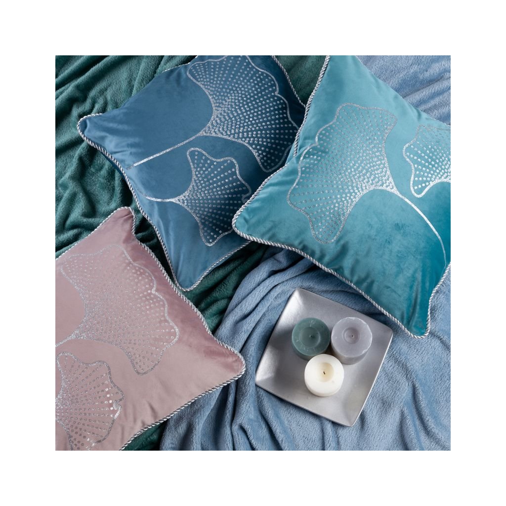 Zamatová obliečka na vankúš so striebornou potlačou zdobená ozdobnou šnúrou šírka: 45 cm, dĺžka: 45 cm, farba: tmavomodrá, hmotnosť: 290 GSM, zloženie: 100 % polyesterDodatočné parametre