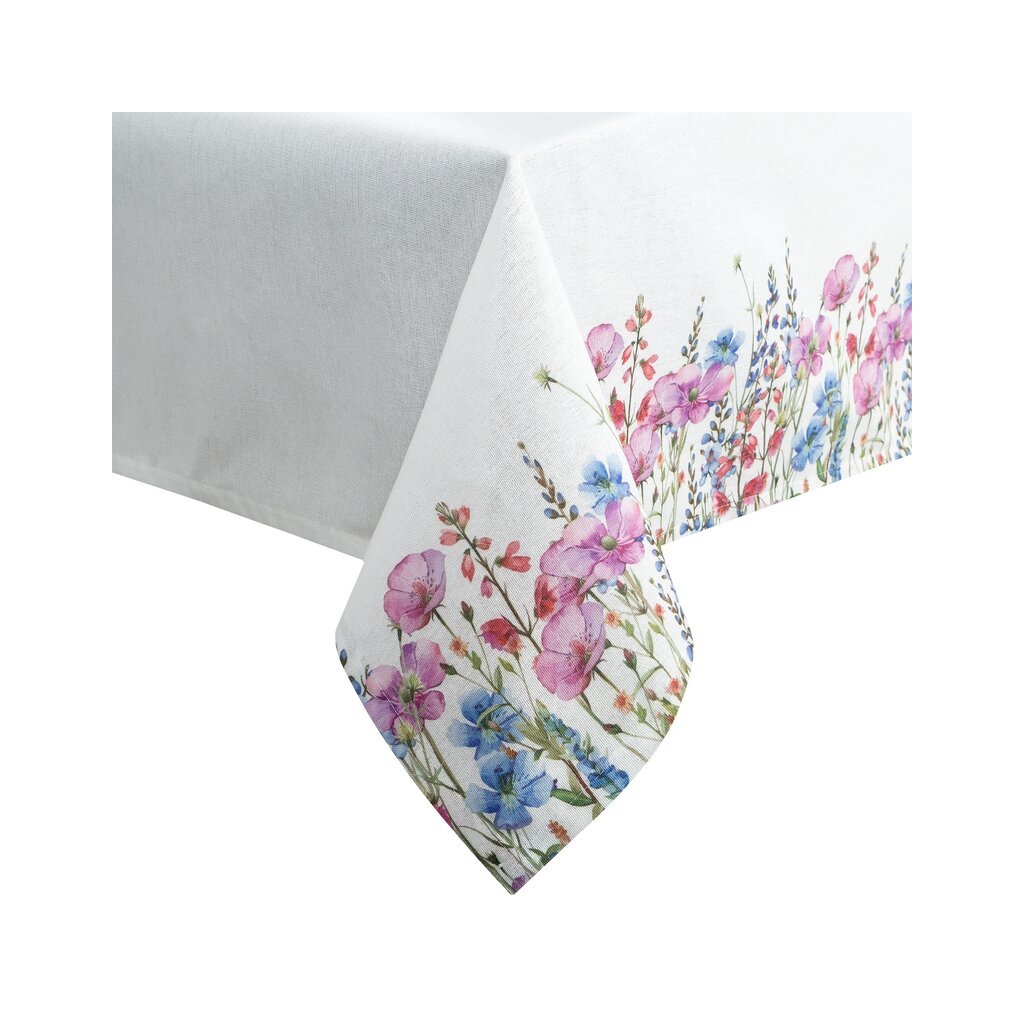 Dekoračný obrus s ochranou proti škvrnám a ozdobnou kvetinovou potlačou.