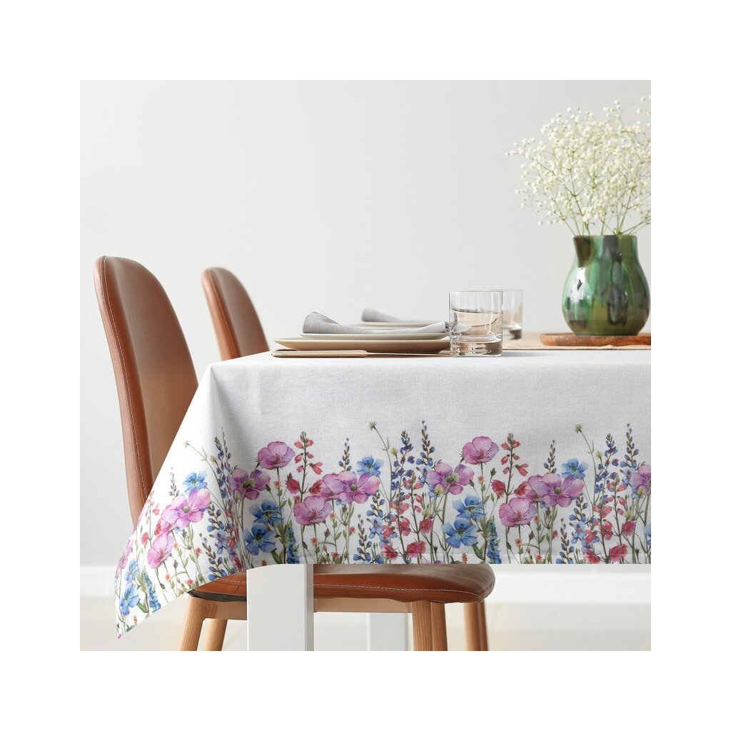 Dekoračný obrus s ochranou proti škvrnám a ozdobnou kvetinovou potlačou.
