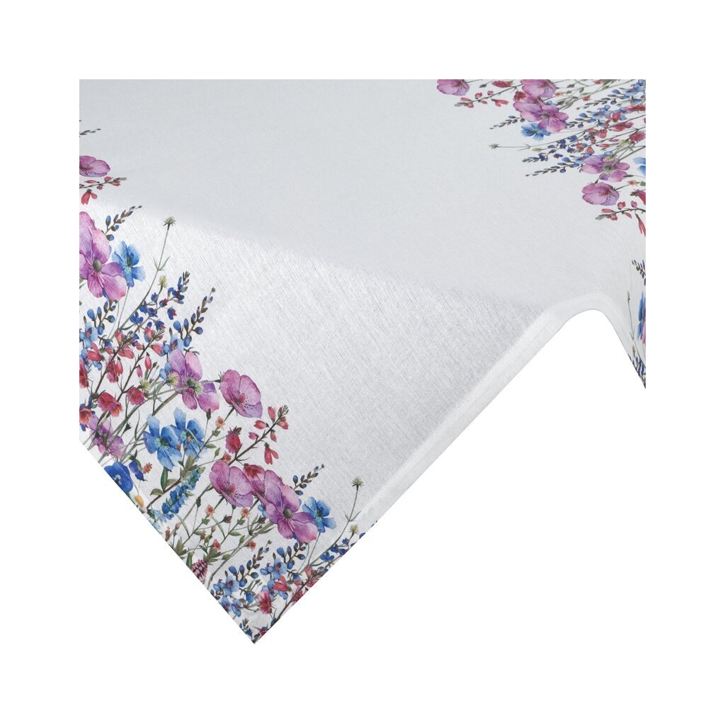 Dekoračný obrus s ochranou proti škvrnám a ozdobnou kvetinovou potlačou.