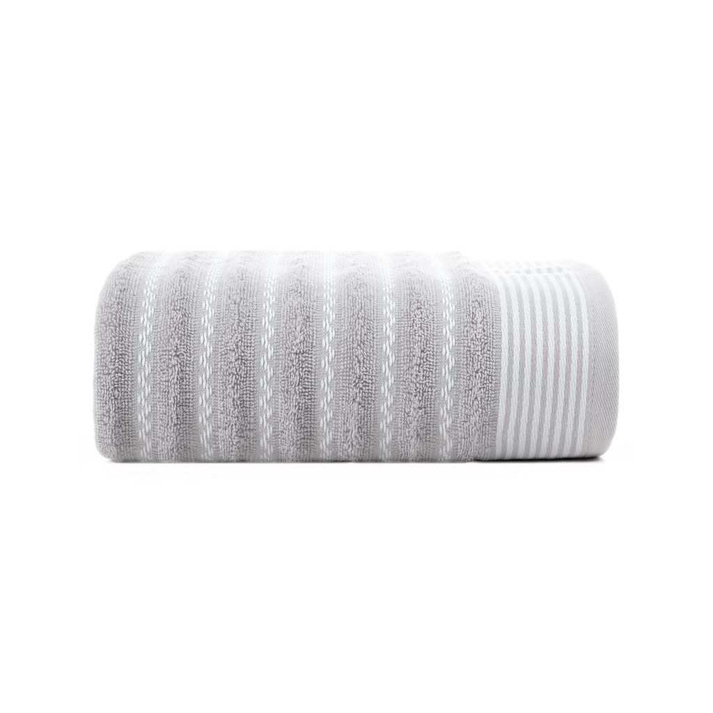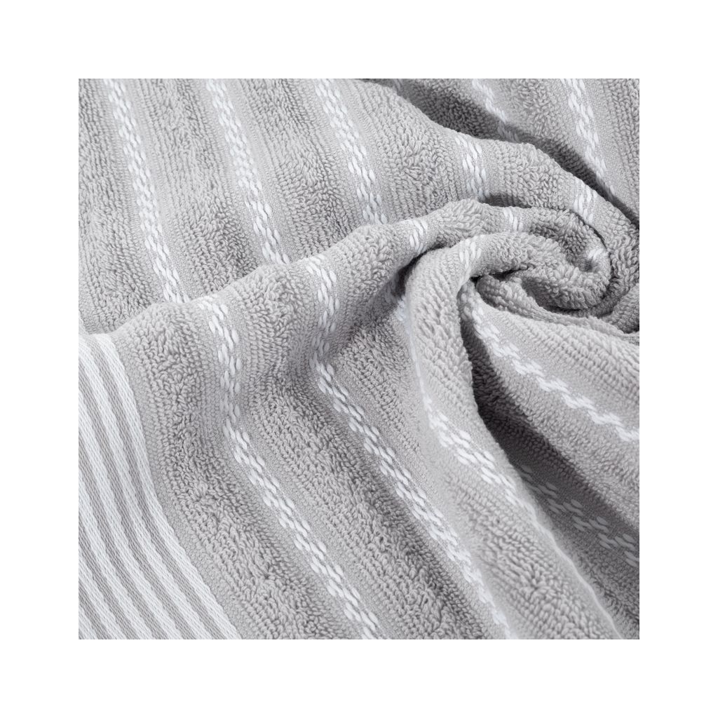 Uterák s ozdobným pruhovaným okrajom šírka: 70 cm, dĺžka: 140 cm, farba: strieborná, hmotnosť: 450 GSM, zloženie: 100% bavlna; 97,5% bavlna 2,5% polyesterDodatočné parametre