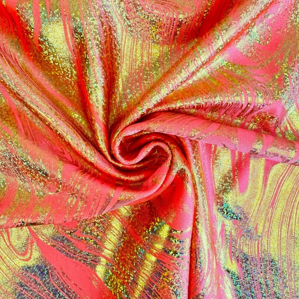 Kvalitný elastický úplet s jednotným základom, na povrchu ktorého sa striedajú efekty strieborných trblietok, ktoré dodávajú výrazný lesk. Látka od európského výrobcu, so zložením 80% polyamid a 20% elastan, s gramážou 204 g/m2. Plavkovina je vhodná na tanečné kostýmy, plavky, bikiny, legíny, trikoty, body a šaty.
