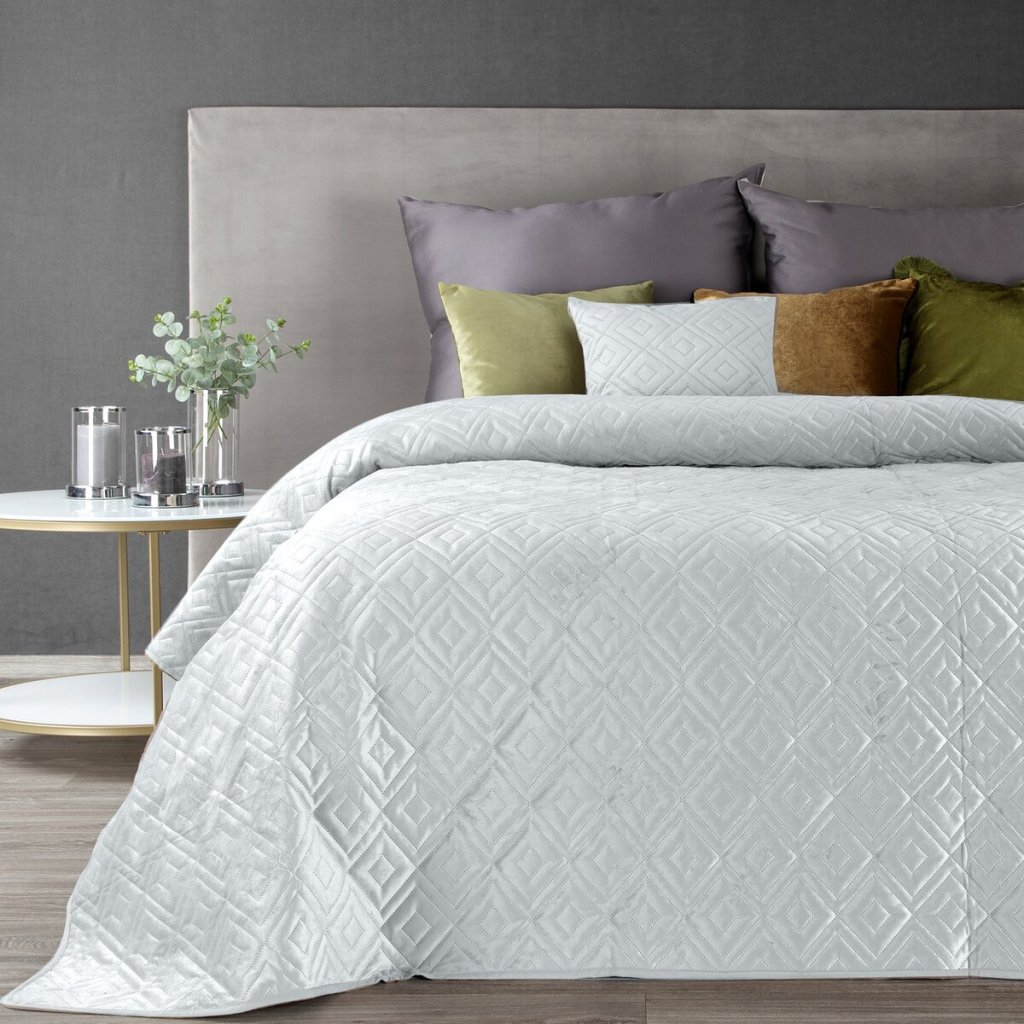 Klasický a veľmi elegantný prehoz na posteľ z mäkkého zamatu prešívaný módnym motívom šupín. Prešívanie metódou bezšvového horúceho tlače. šírka: 170 cm, dĺžka: 210 cm, farba: biela, hmotnosť: 180+70+100 GSM, zloženie: 100 % polyesterDodatočné parametre