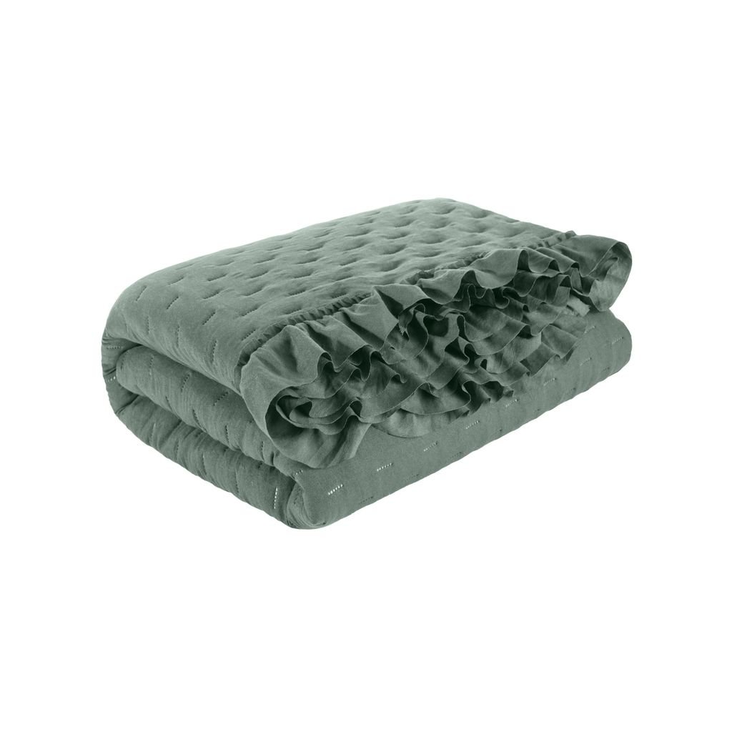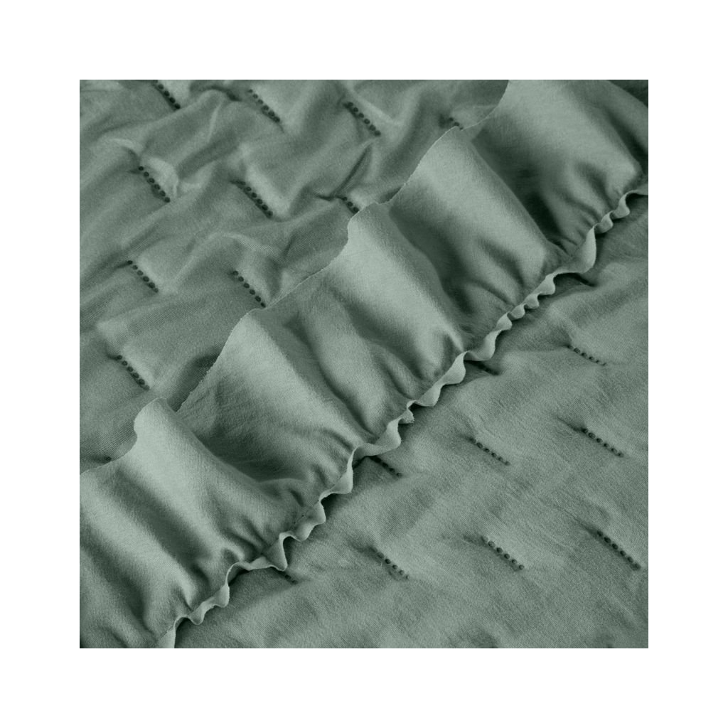 Klasický prehoz na posteľ z mäkkého a príjemného mikrovlákna zdobený jemným prešívaním bezšvovou metódou horúceho lisovania. Okraje zdobené širokým riaseným volánom Šírka: 170 cm, Dĺžka: 210 cm, Farba: tmavá mentolová, Hmotnosť: 80+70+120 GSM, Zloženie: 100 % polyesterDodatočné parametre