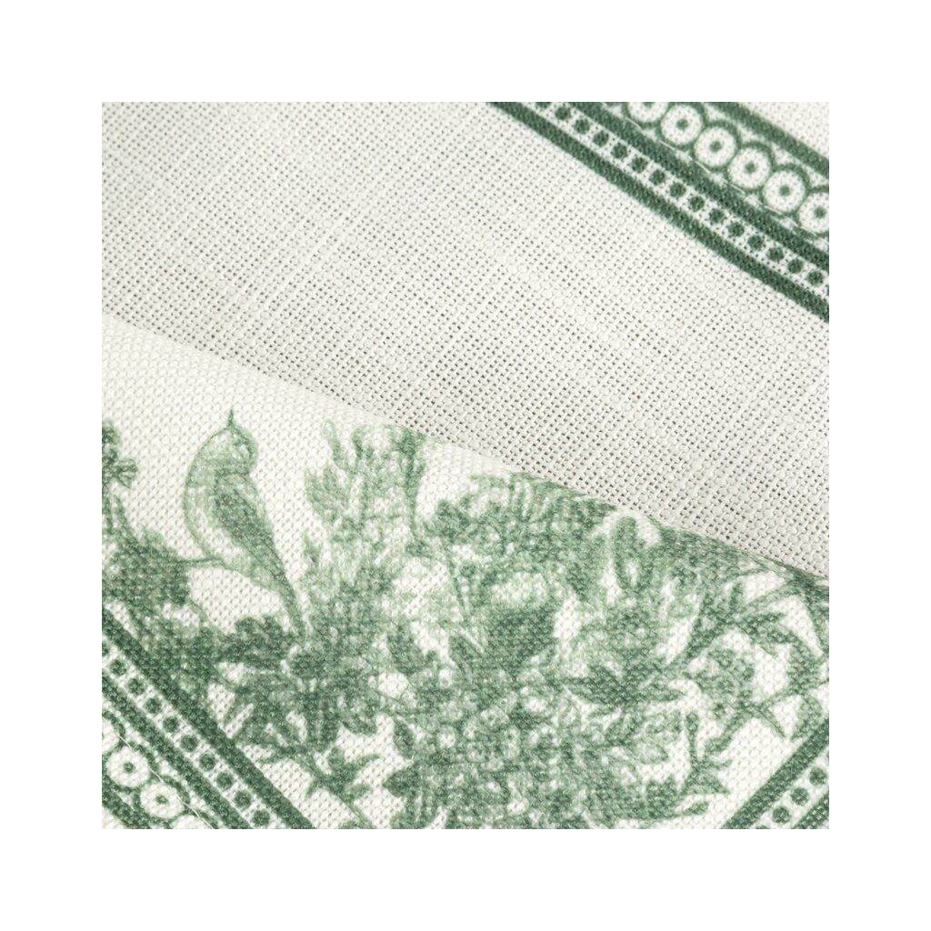 Štýlové dekoratívne prestieranie v odtieni prírodnej bielej so zeleným rastlinným vzorom je ideálnou voľbou pre milovníkov elegancie a jemnej klasiky.