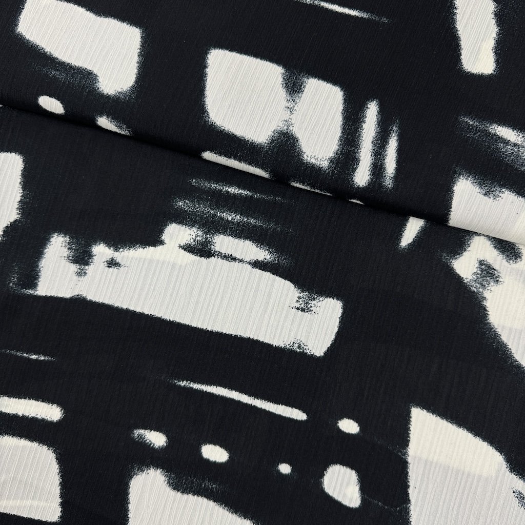 Vzorovaný šifón je ľahká, priesvitná a jemná tkanina, ktorá sa vyznačuje hladkým povrchom a vzdušným vzhľadom. Je ideálny na výrobu elegantných šiat, blúzok, šálov alebo sukien, vďaka svojej elegancii a pohodlnosti. Vzorovaná verzia pridáva tkanine zaujímavý vizuálny efekt, ktorý je perfektný na špeciálne príležitosti.