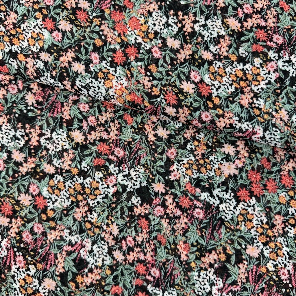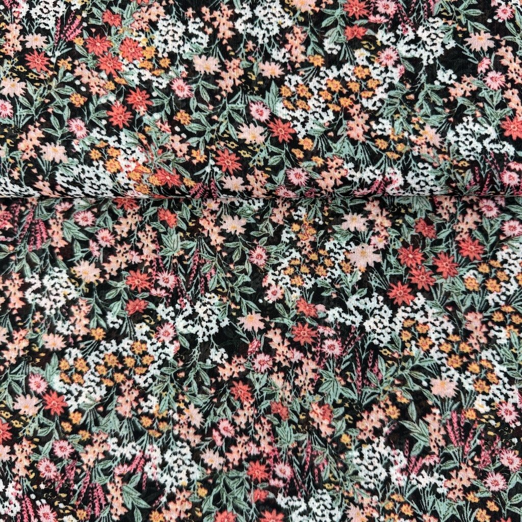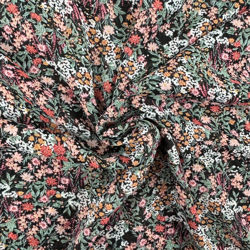 Vzorovaný šifón je ľahká, priesvitná a jemná tkanina, ktorá sa vyznačuje hladkým povrchom a vzdušným vzhľadom. Je ideálny na výrobu elegantných šiat, blúzok, šálov alebo sukien, vďaka svojej elegancii a pohodlnosti. Vzorovaná verzia pridáva tkanine zaujímavý vizuálny efekt, ktorý je perfektný na špeciálne príležitosti.
