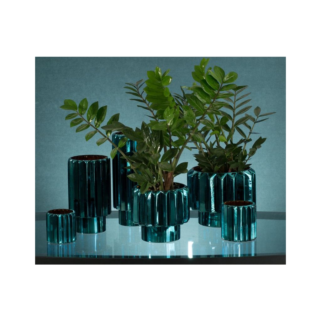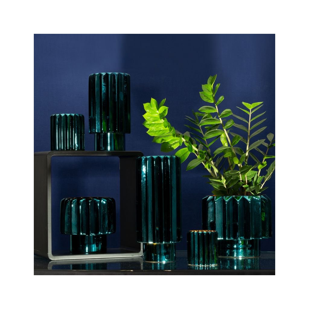 dekoratívny svietnik šírka: (fi) 10 cm, dĺžka: 10 cm, farba: tyrkysová, zloženie: 100 % skloDodatočné parametre