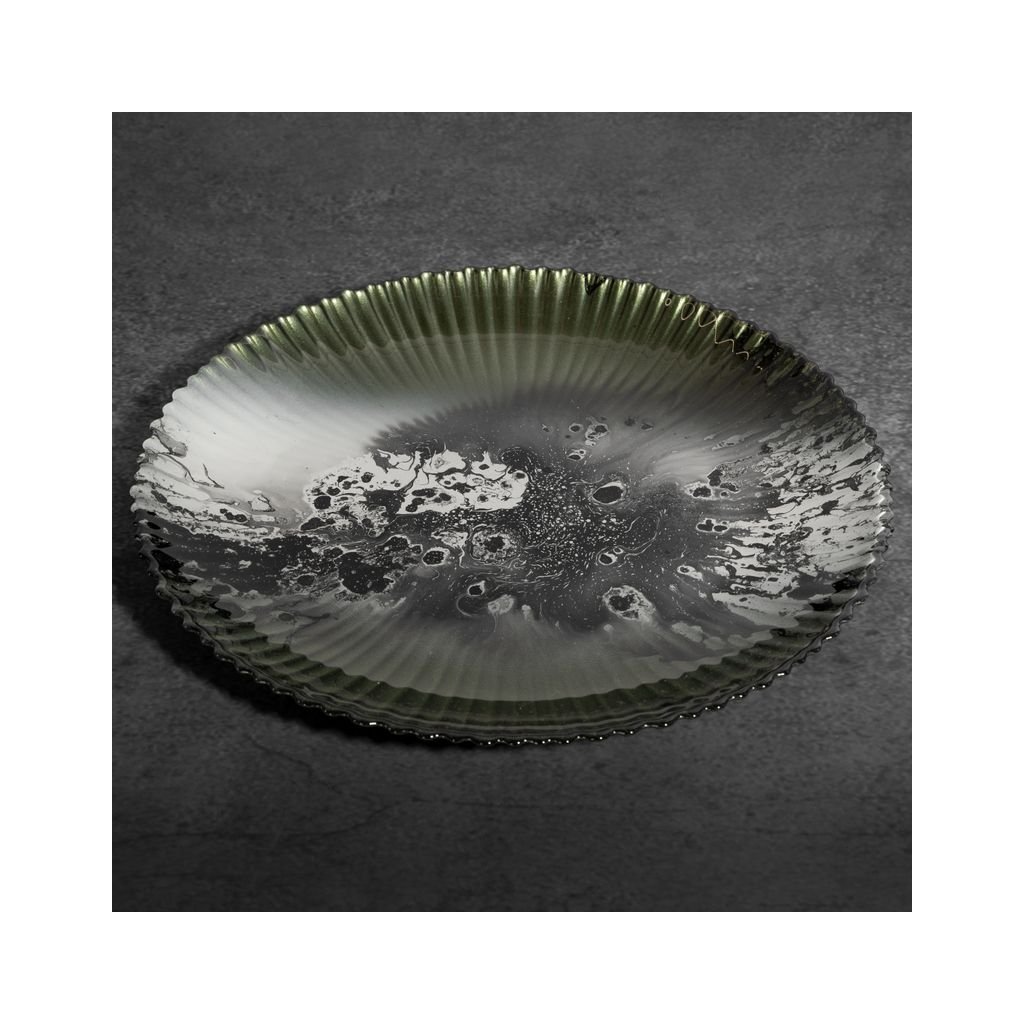 Dekoratívny tanier šírka: (fi) 32 cm, dĺžka: 3 cm, farba: zelená, zloženie: 100 % skloDodatočné parametre