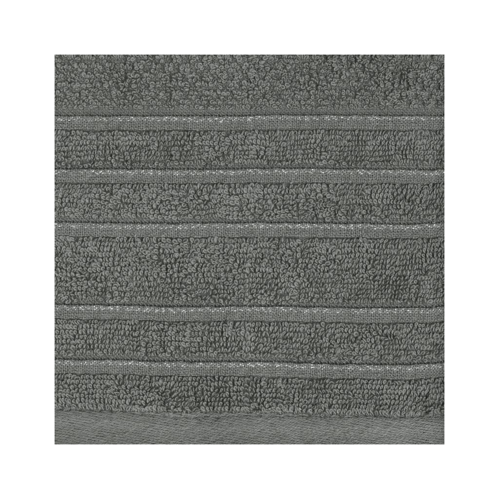 Klasická osuška zo savého bavlneného froté. Minimalistický velúrový lem s lesklou kovovou niťou. šírka: 30 cm, Dĺžka: 50 cm, Farba: oceľ, Hmotnosť: 500 GSM, Zloženie: 100% bavlna; 80% kovová niť 20% bavlnaDodatočné parametre