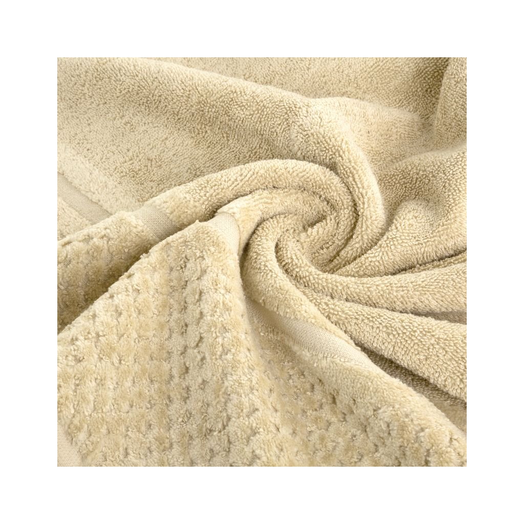 Klasická osuška zo savého bavlneného froté. Minimalistický velúrový lem s lesklou kovovou niťou. šírka: 50 cm, dĺžka: 90 cm, farba: béžová, hmotnosť: 550 GSM, zloženie: 100 % bavlnaDodatočné parametre