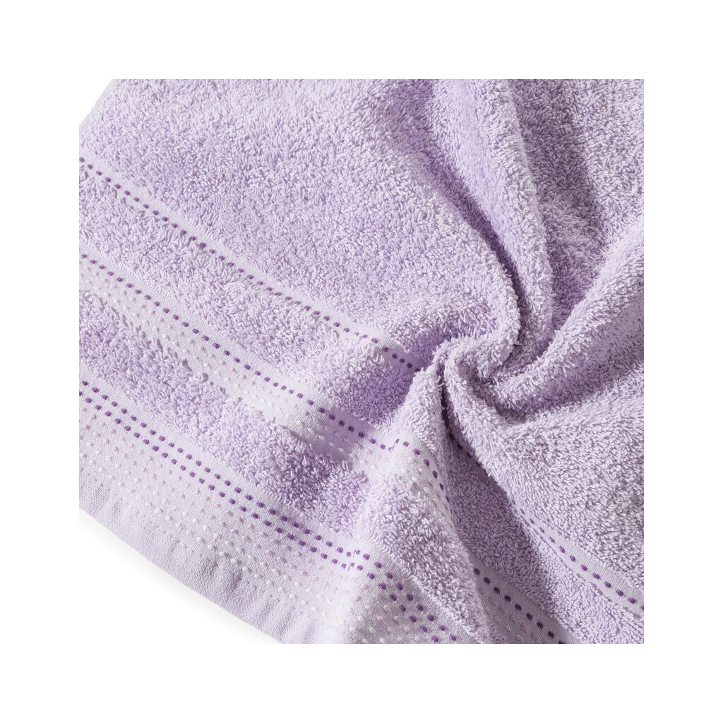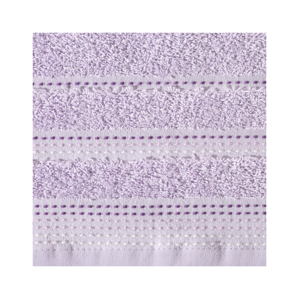 Jednofarebný uterák z mäkkej a savej bavlnenej tkaniny s froté väzbou, zdobený farebnou bordúrou v štýle ozdobného prešívania. Ľahko sa perie, nepúšťa farbu.