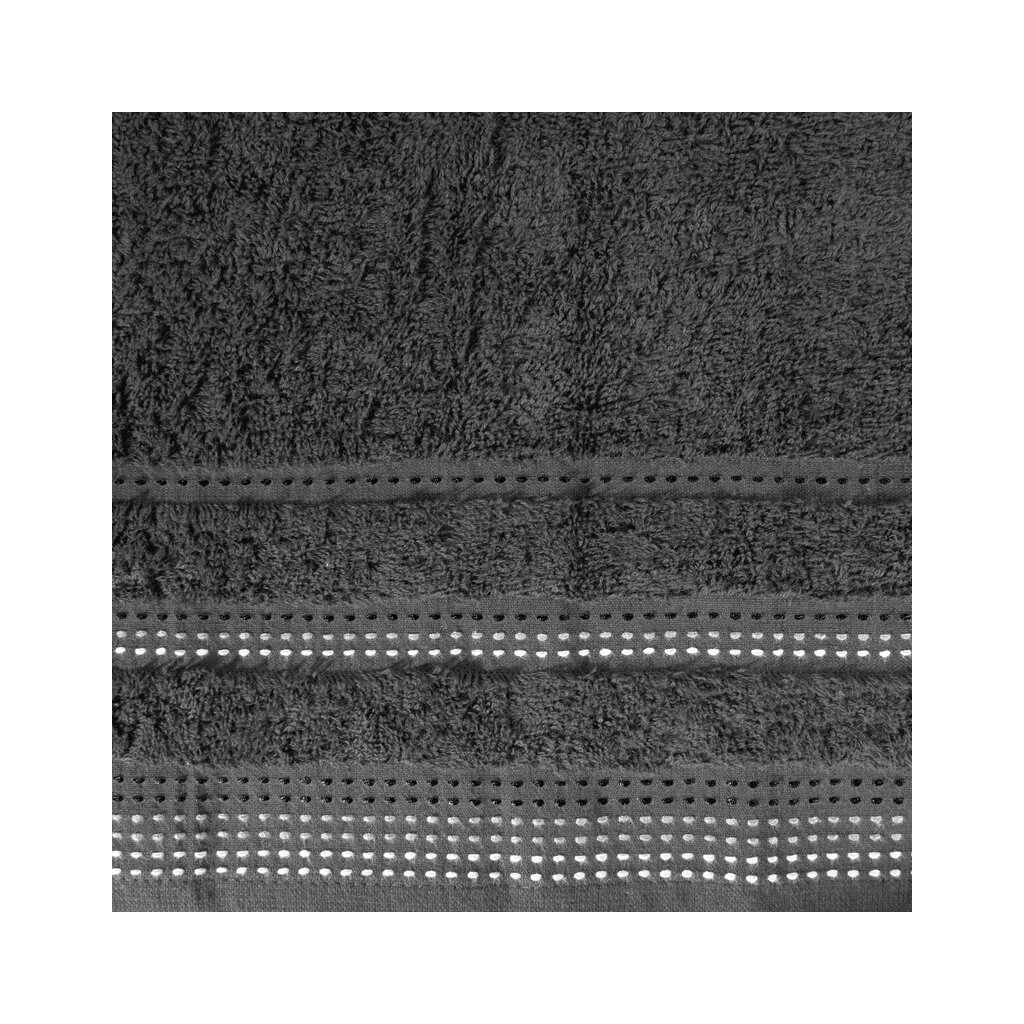 Jednofarebný uterák z mäkkej a savej bavlnenej tkaniny s froté väzbou, zdobený farebnou bordúrou v štýle ozdobného prešívania. Ľahko sa perie, nepúšťa farbu.
