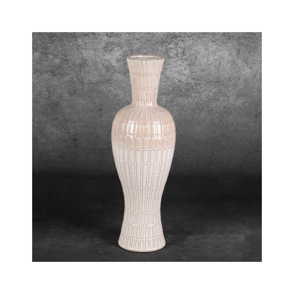 Dekoratívna váza šírka: (fi) 17 cm, dĺžka: 56 cm, farba: krémová, zloženie: keramická hlinaDodatočné parametre