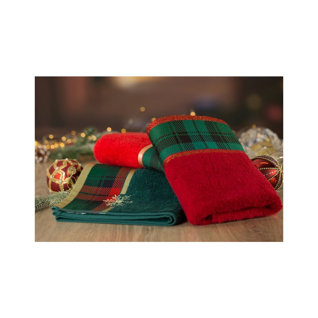 Vianočná osuška so žakárovým okrajom a lesklou zlatou niťou farba: bordová, gramáž: 480 GSM, zloženie: 100% bavlna; 50% bavlna 50% polyester