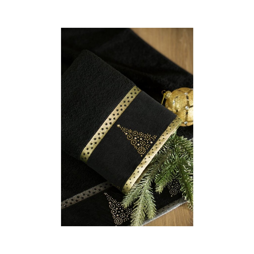 Vianočný uterák so žakárovým okrajom zdobený kamienkami a niťou, farba: čierna, gramáž: 480 GSM, zloženie: 100% bavlna; 50% bavlna 50% polyester