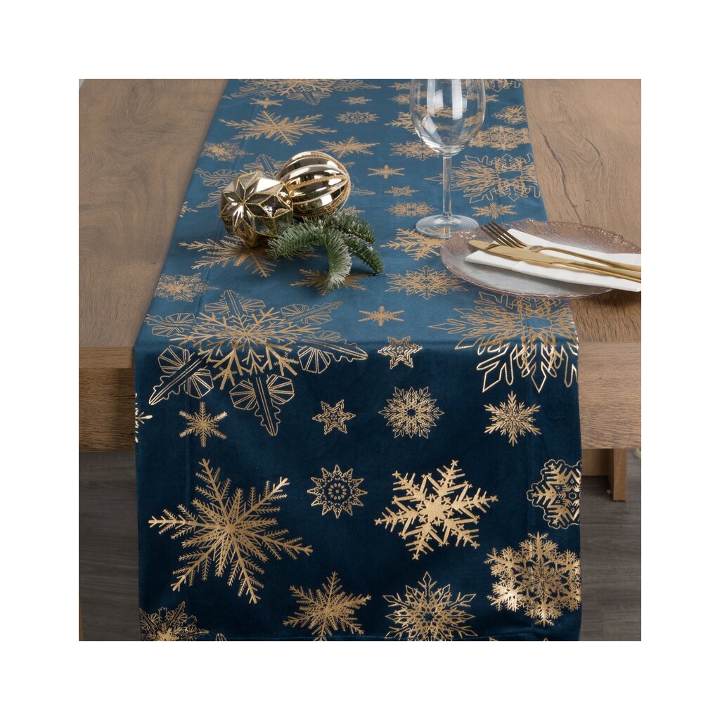 Zamatová vianočná dekoračná štóla s ozdobnou potlačou.