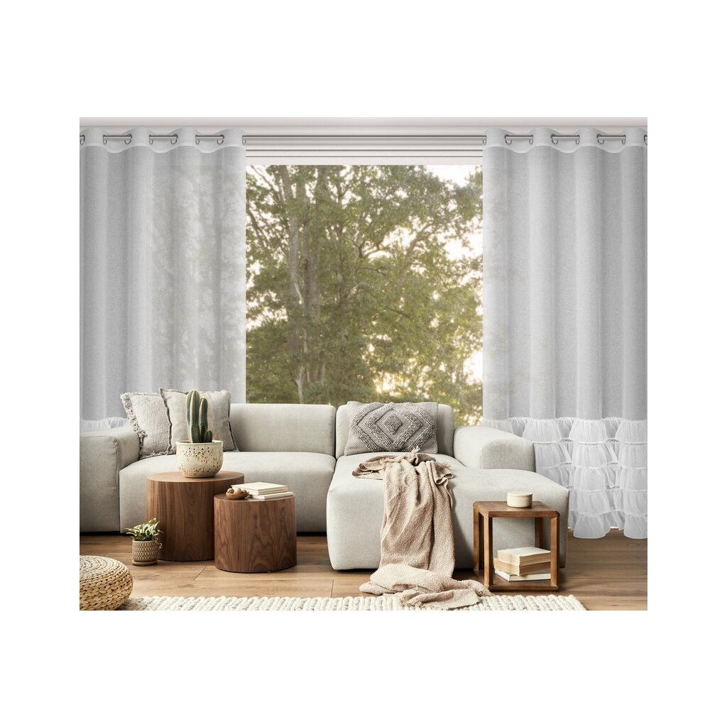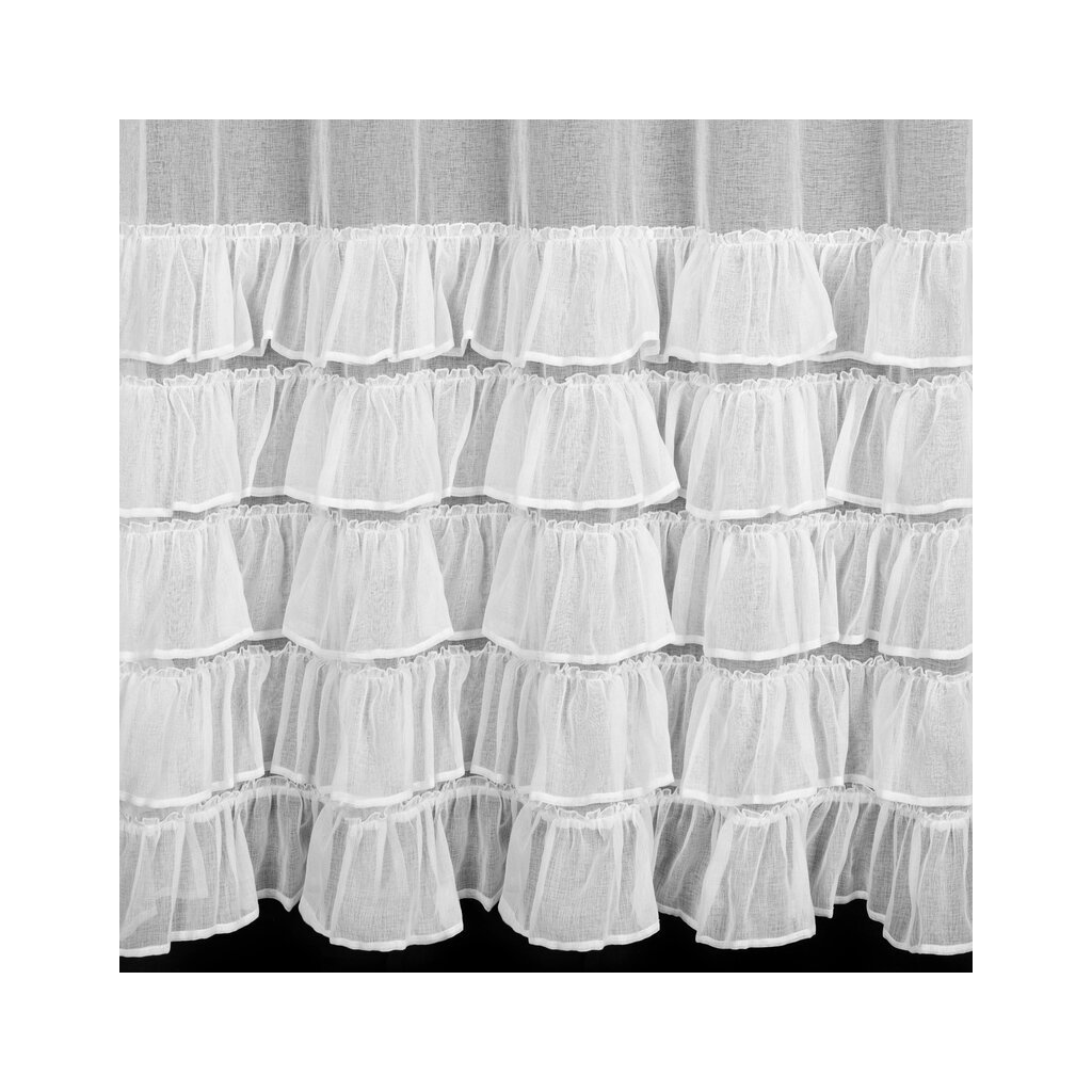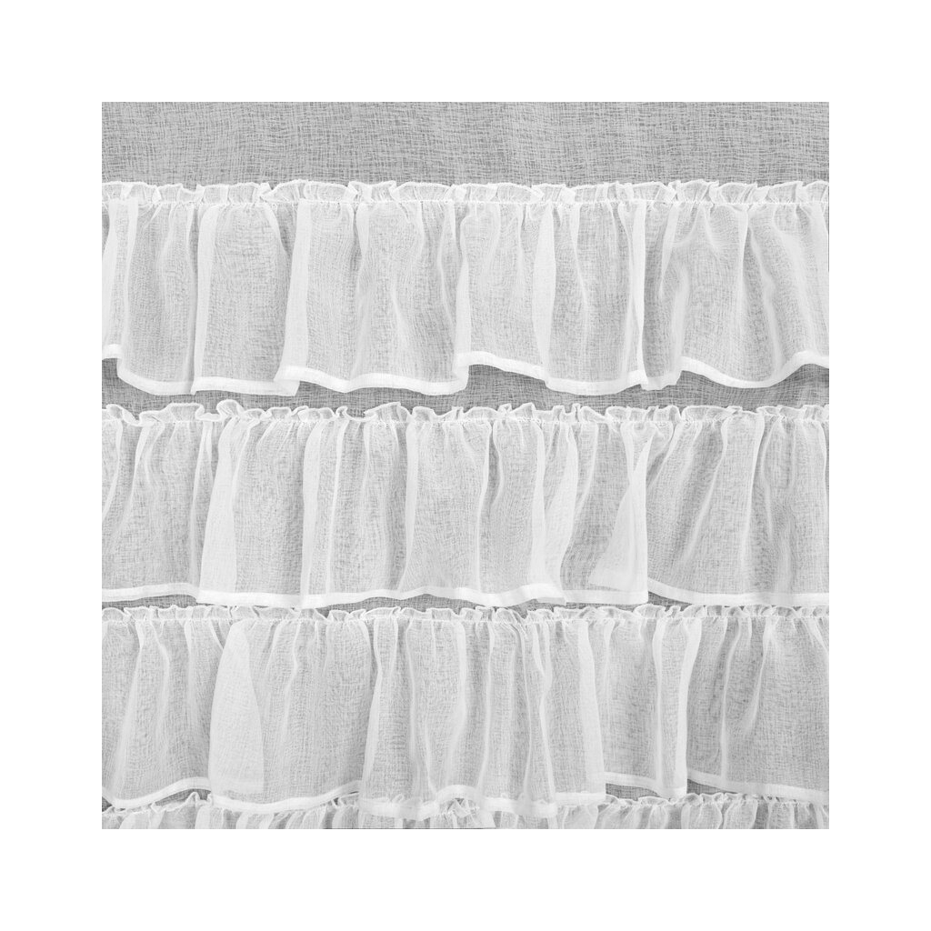 Hotová záclona zdobená v spodnej časti volánikmi.