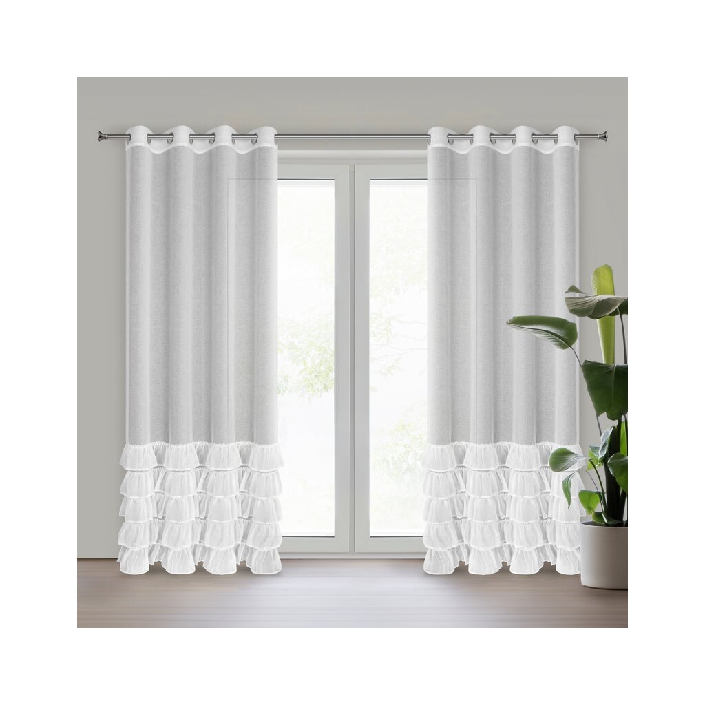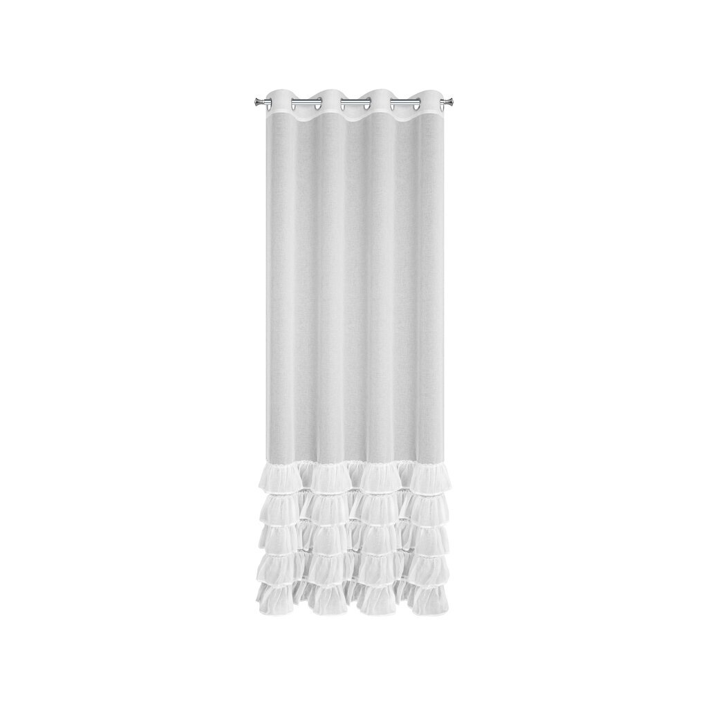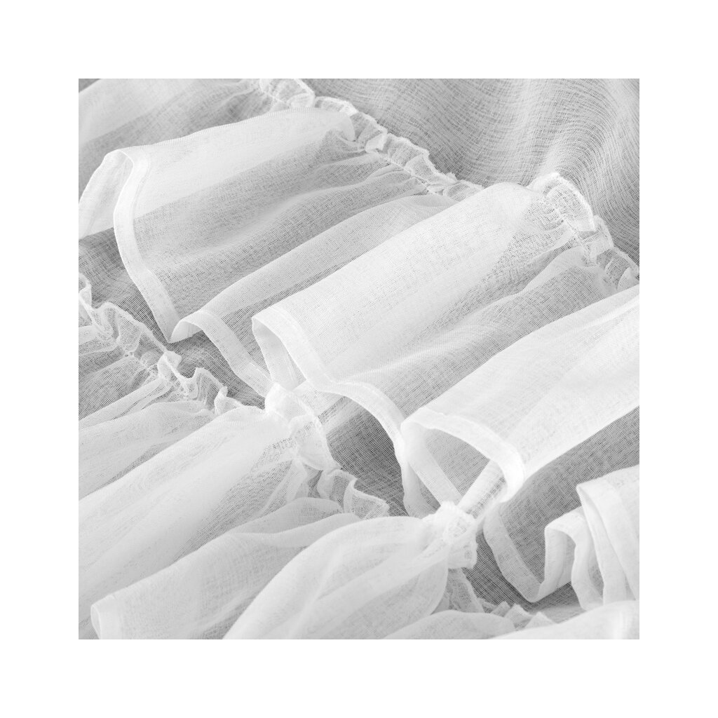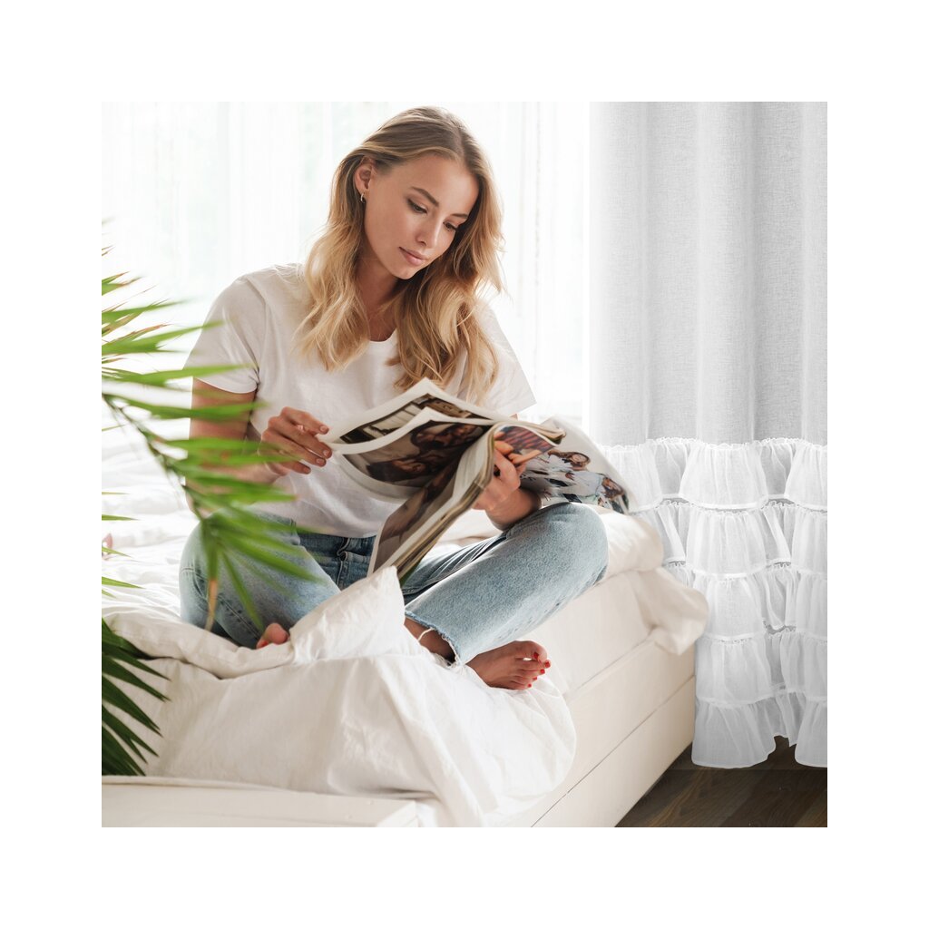 Hotová záclona zdobená v spodnej časti volánikmi.